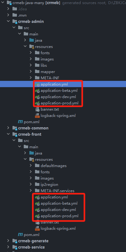 下边打开一个application.yml对里边的参数做详细说明