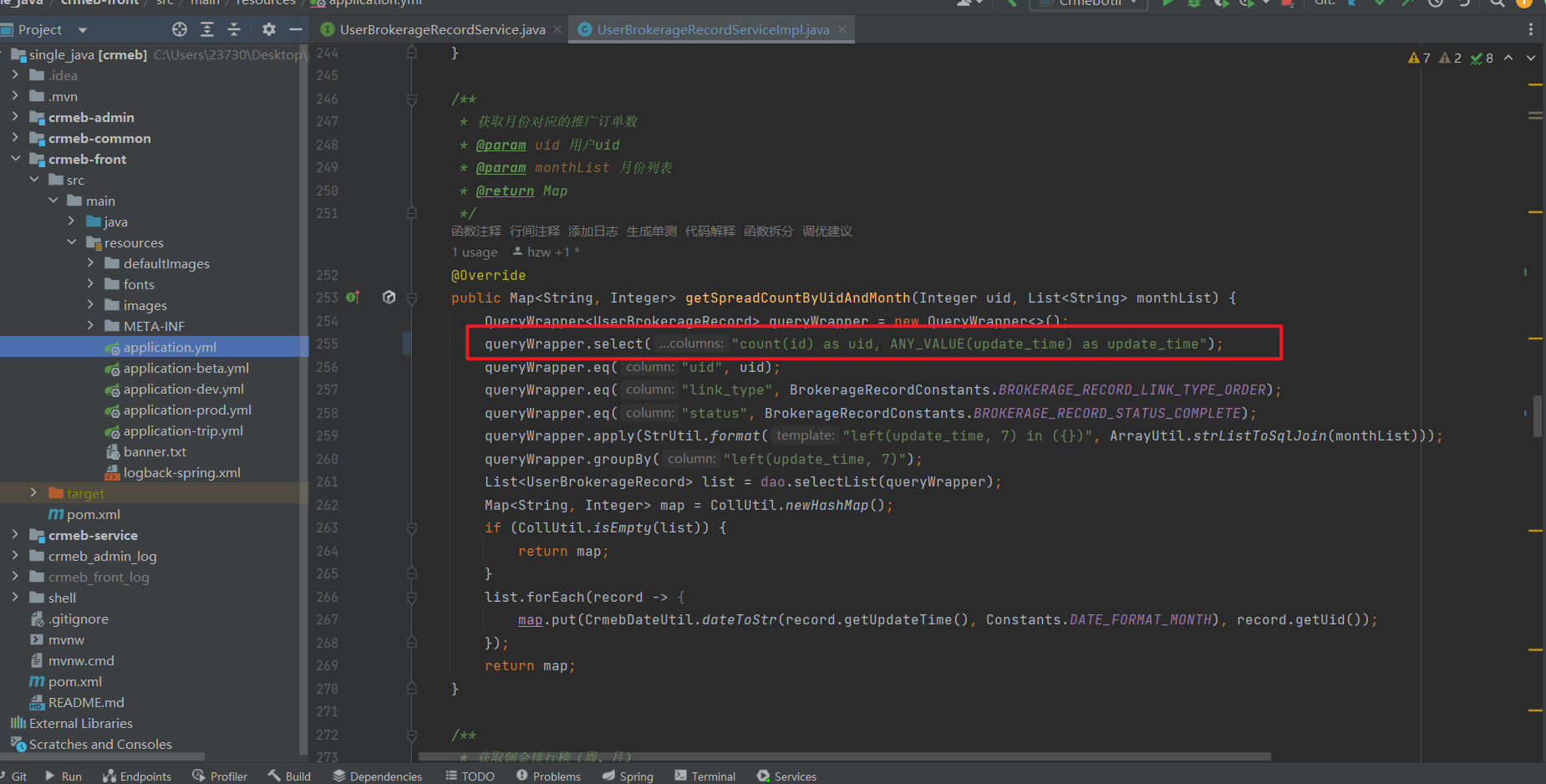 以下两处,考虑到复杂嵌套查询,直接新建查询方法,改用原生sql