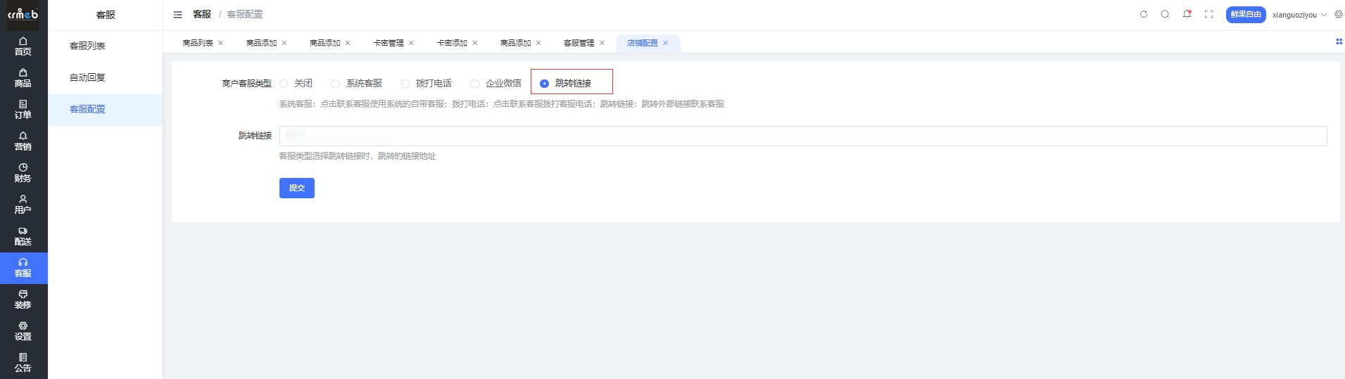 设置跳转第三方链接客服