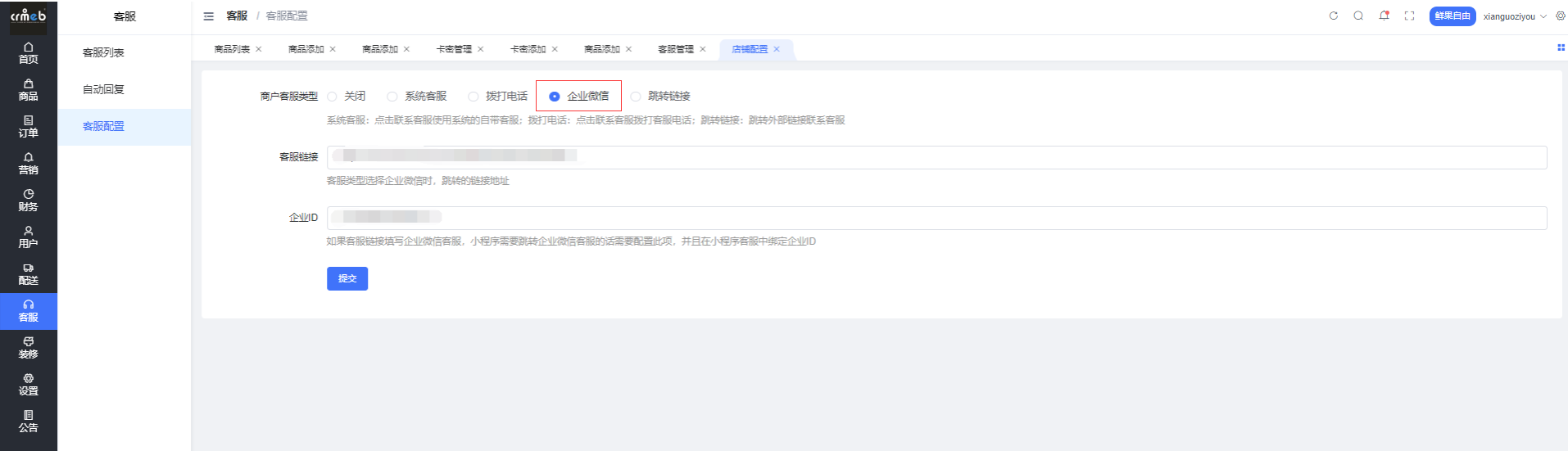 设置企业微信客服(不支持PC端客服)