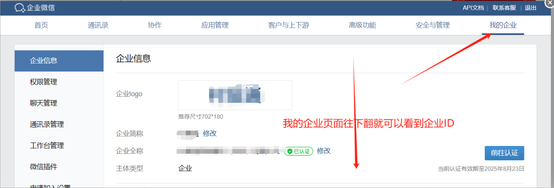 平台后台链接和企业ID配置