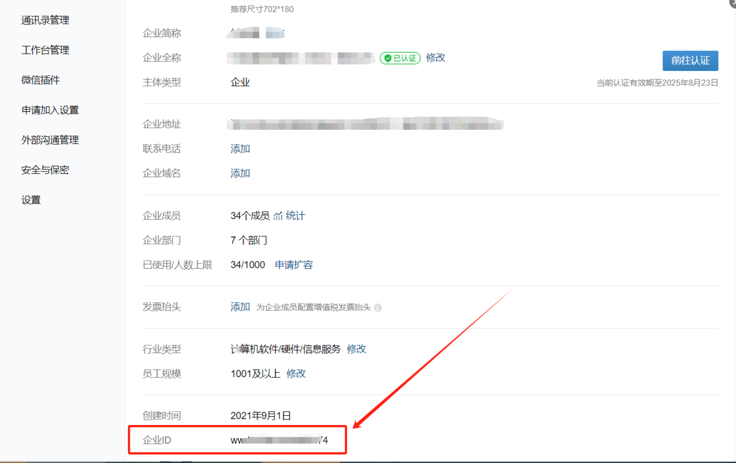 第三步:找到企业微信ID