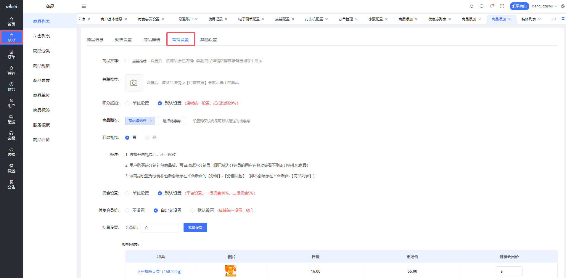 位置:商户后台>商品 > 商品列表 > 添加商品