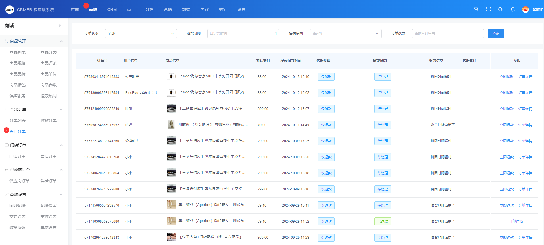 供应商订单和商城配送订单支持快递退货和仅退款。