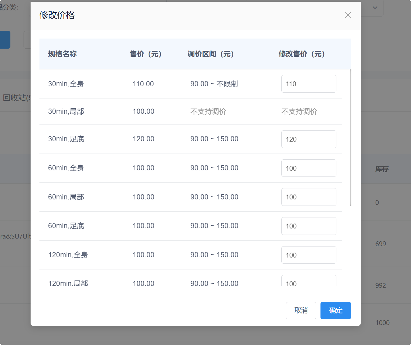 门店应于调价区间内对售价进行调整;若某一商品或规格不支持售价调整,系统将予以“不支持调价”的提示。