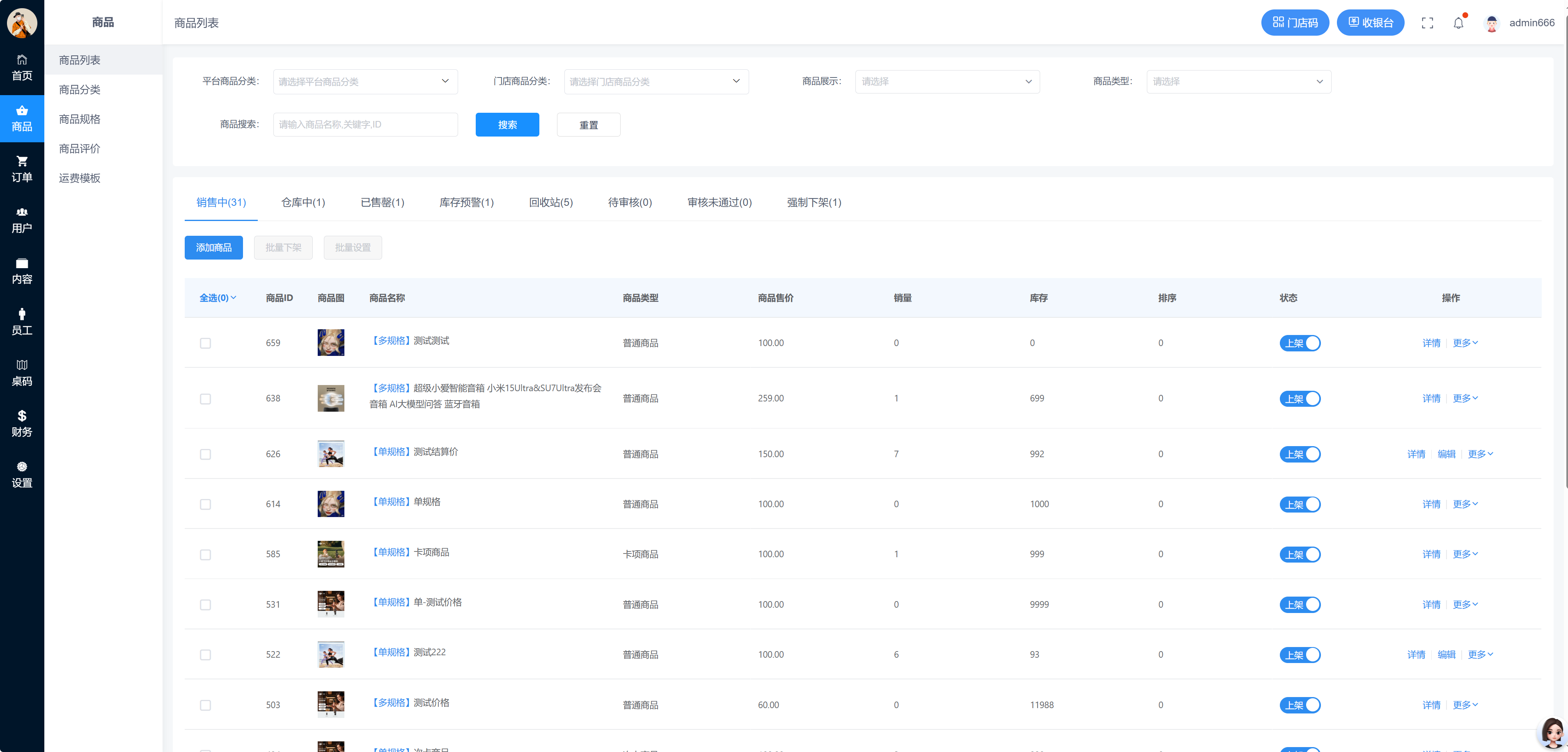 门店可单独创建商品,门店创建的商品需经过平台审核,也可设置免审