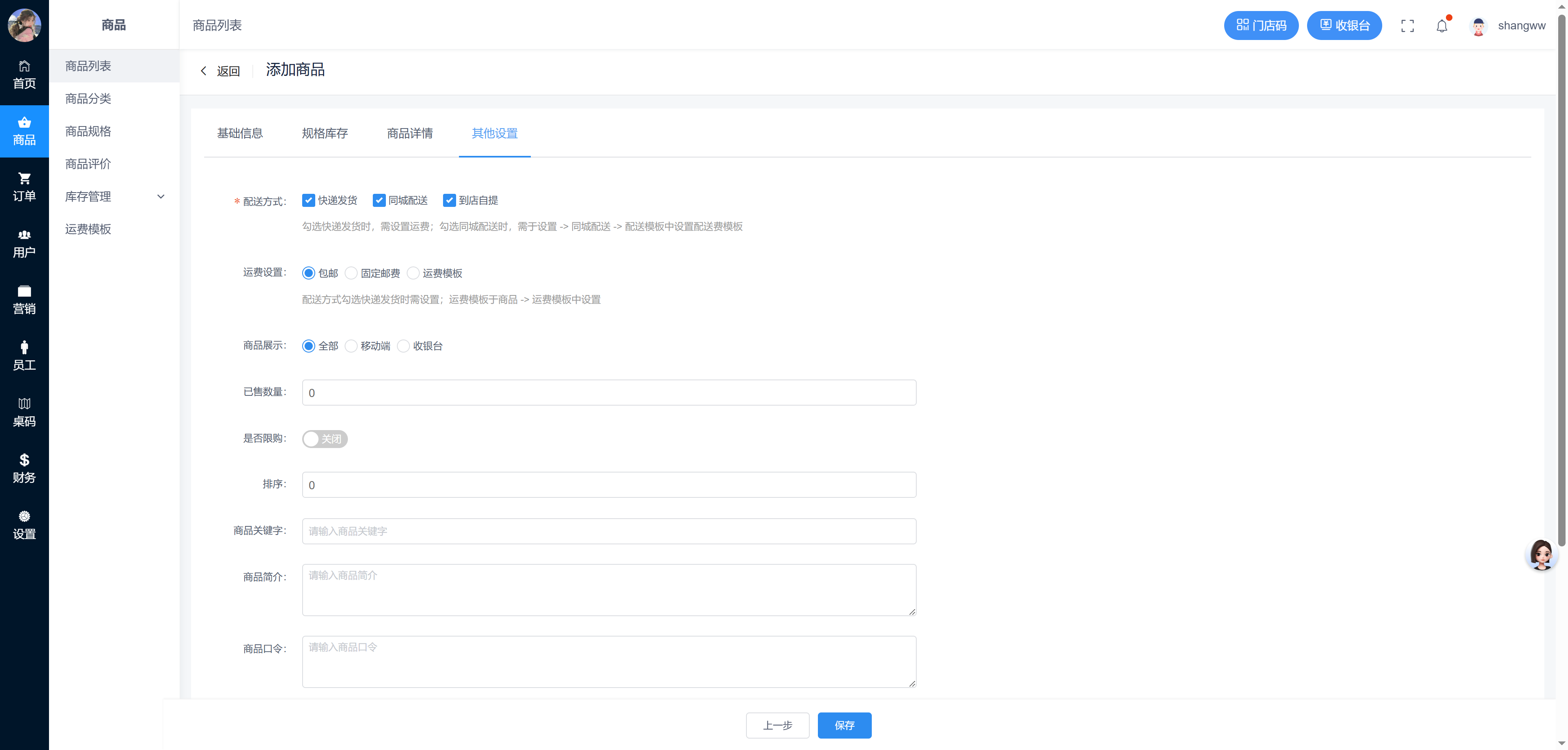 门店有自己的商品管理后台,可对商品做部分管理