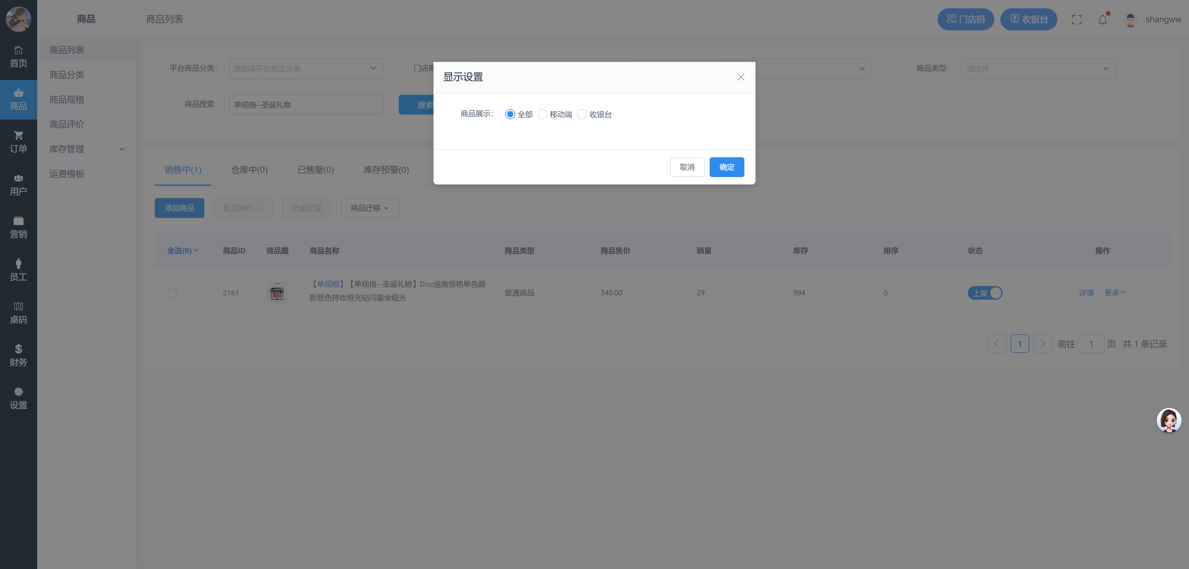 也可以勾选商品,在批量设置中批量为商品修改显示设置。