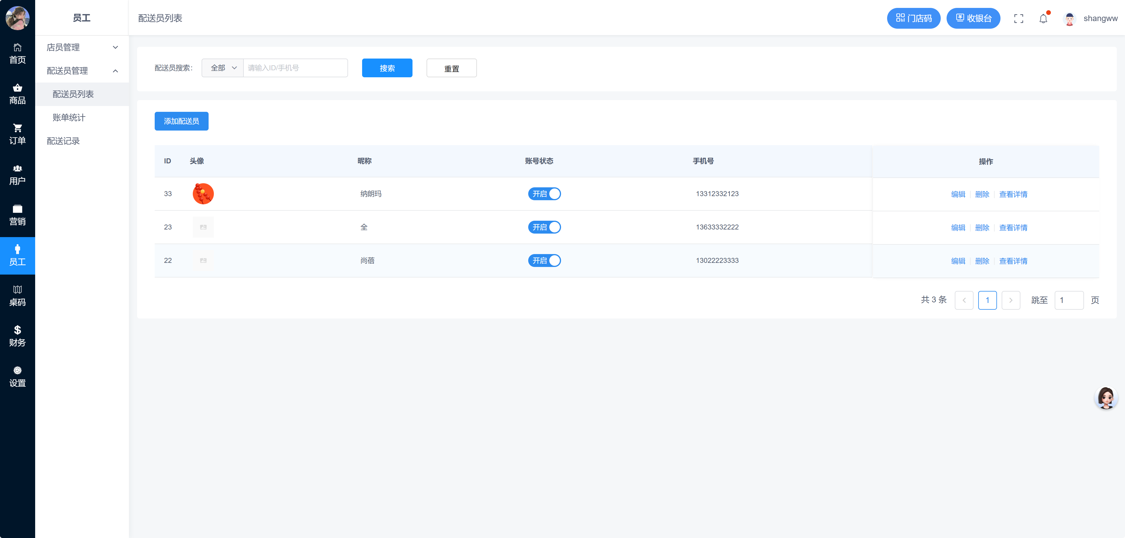 配送员列表