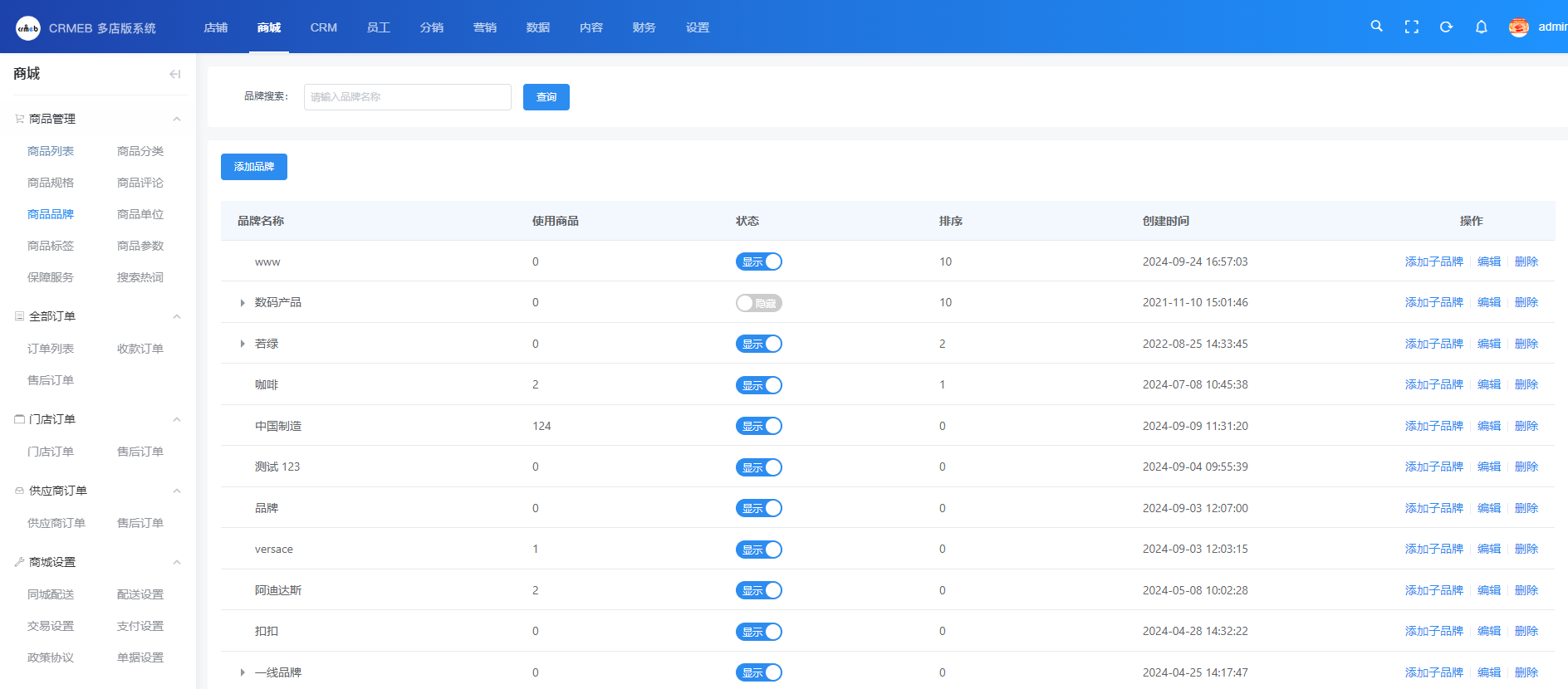 品牌排序:数值越大,在品牌列表中的位置越靠前
