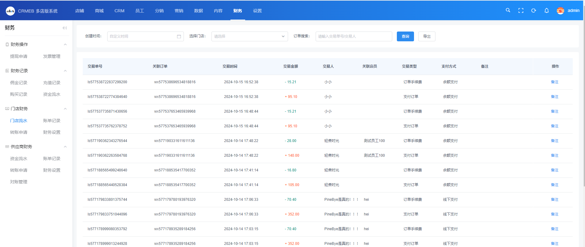 1.展示平台与门店之间的资金流水状况