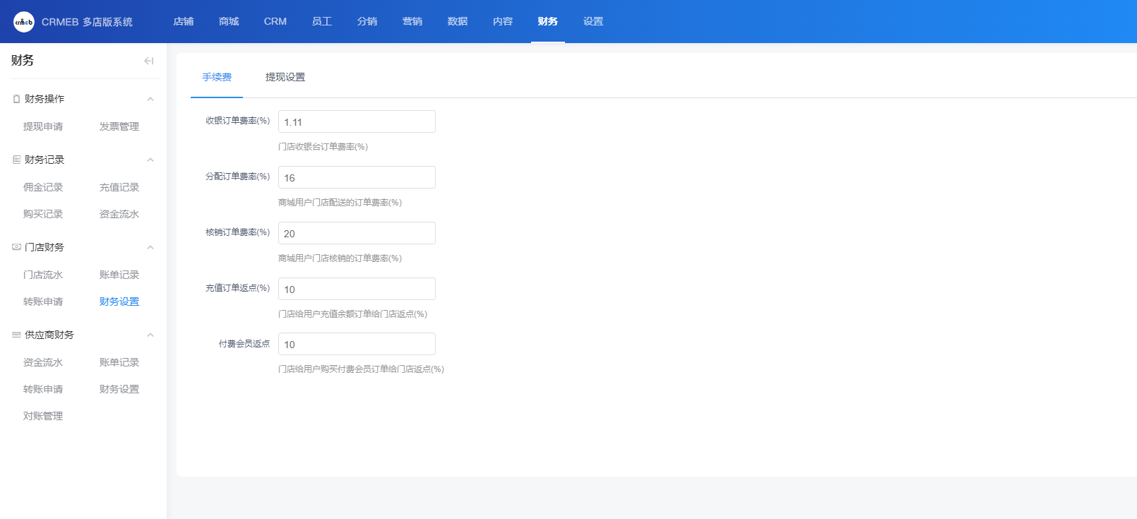 于此处可设置订单的手续费,以订单商品的售价为基准