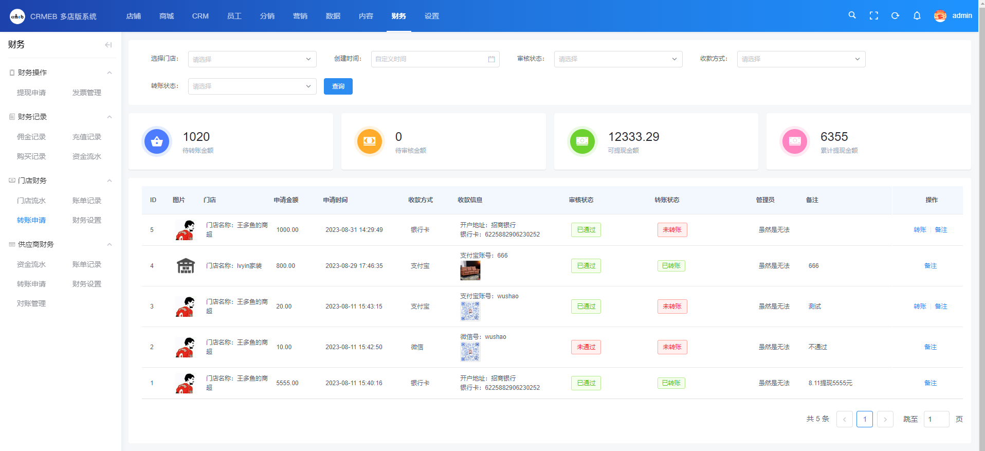 门店可向平台申请提现,平台审核通过后线下转账