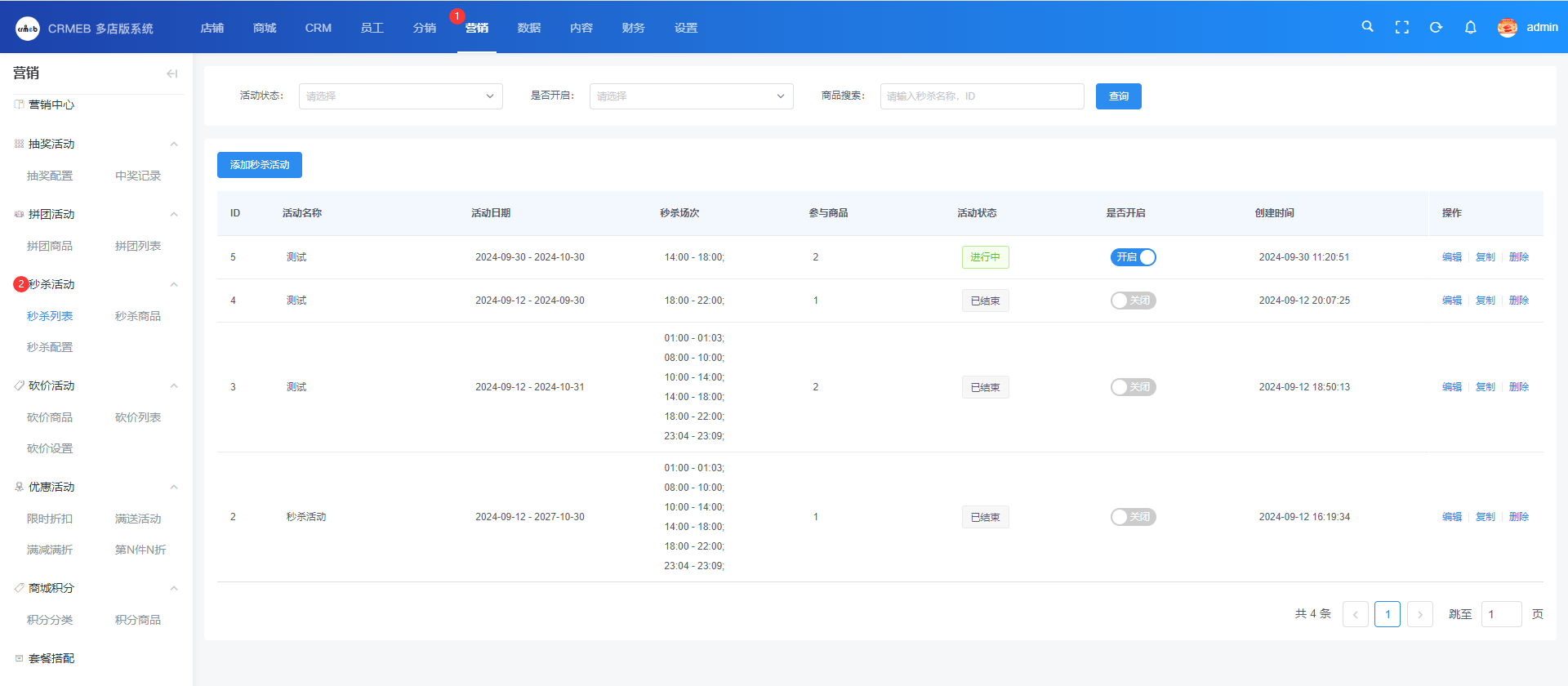 可以自定义时间段,每天可开启多场秒杀活动,限时限量限购,实现快速增长
