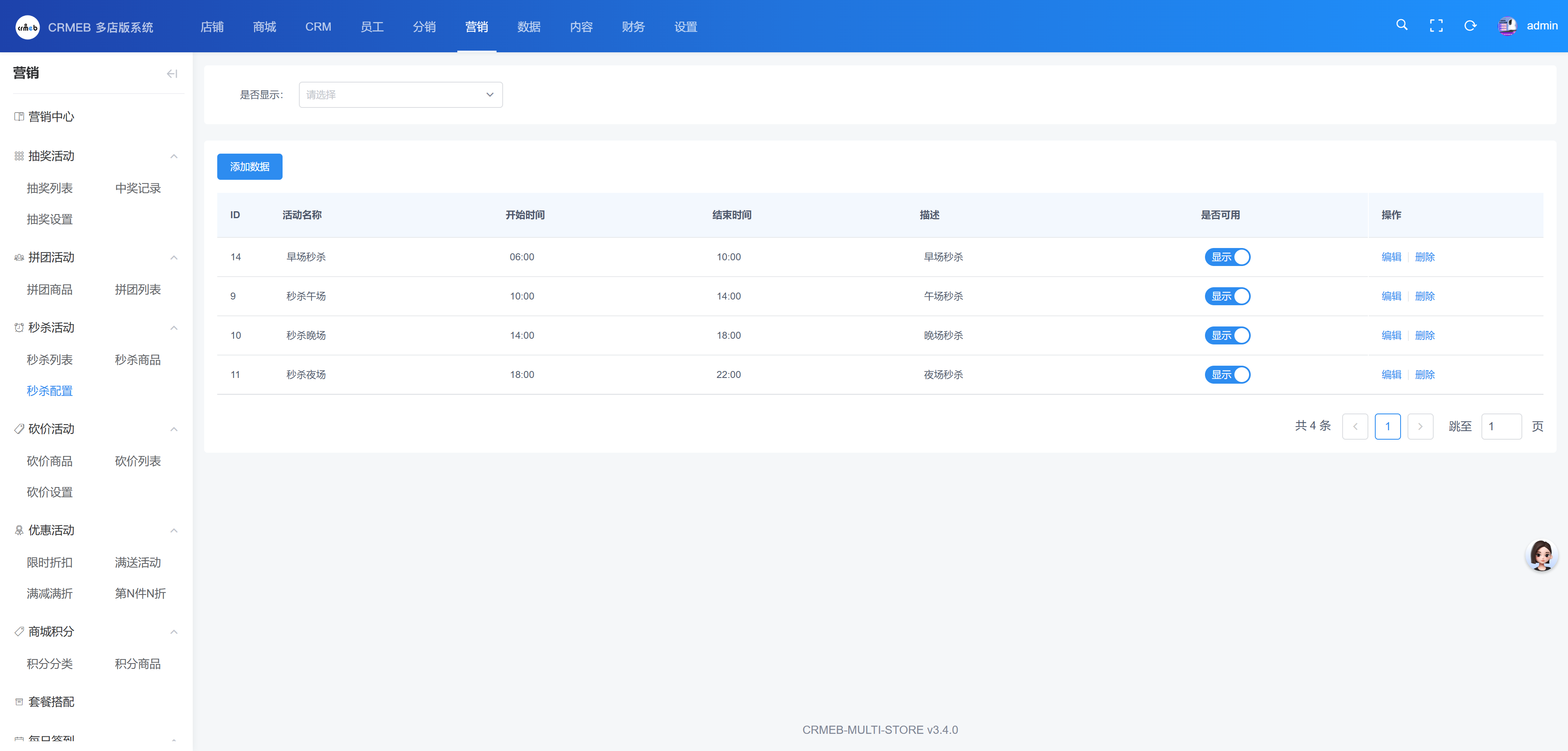 状态:显示/隐藏。隐藏后,添加活动商品时无法选到该时段。