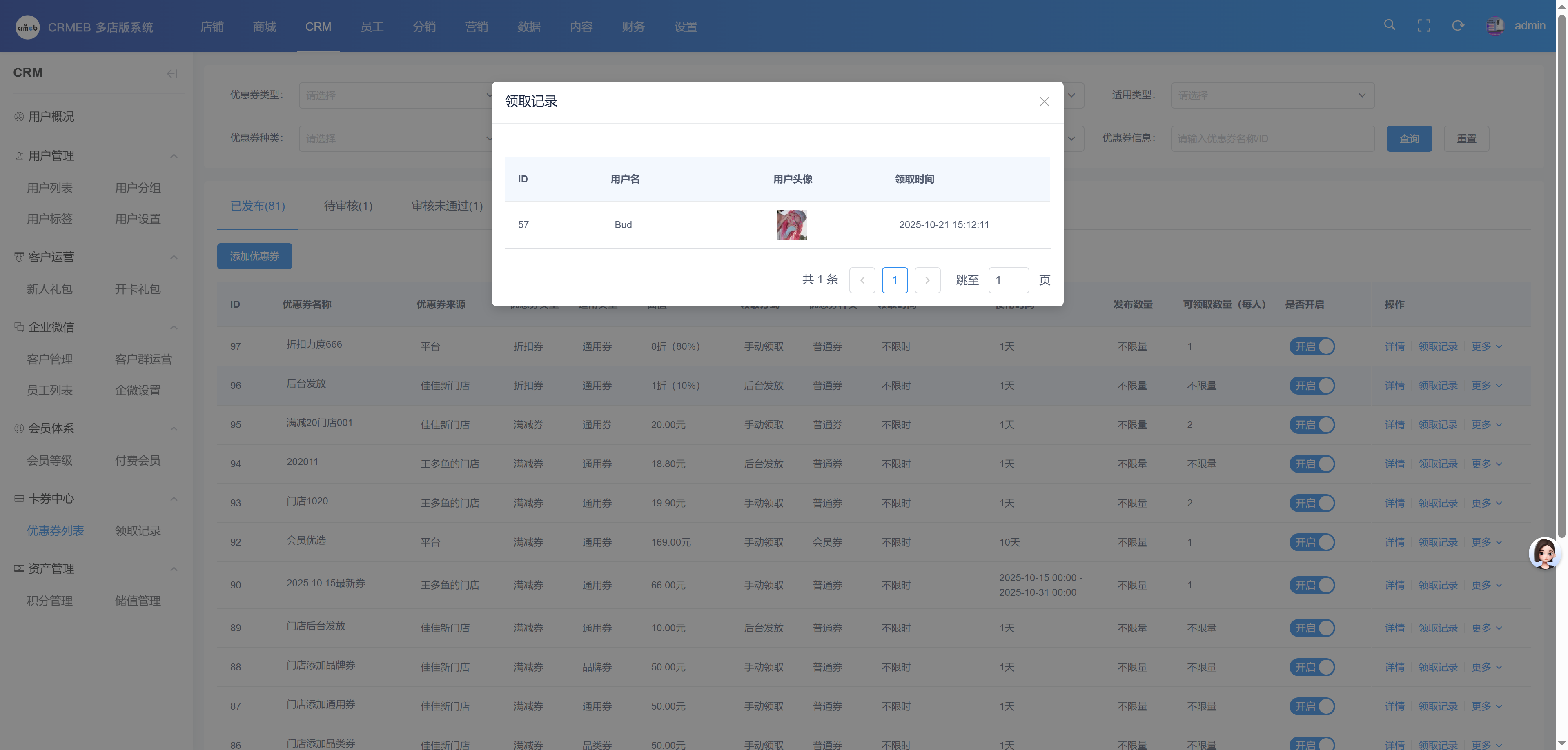 平台审核:平台 具备对门店新建优惠券进行审核的权限。审核通过之后,用户能够在移动端领取优惠券;门店也可于后台发放优惠券 。