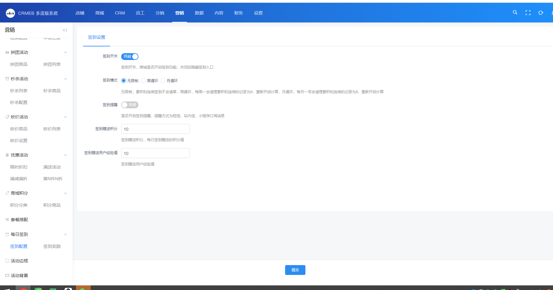 签到提醒:用户在签到页面可以开启或者关闭签到的提醒开关,每日设定的时间给用户进行通知,提醒方式为短信、站内信、小程序订阅消息
