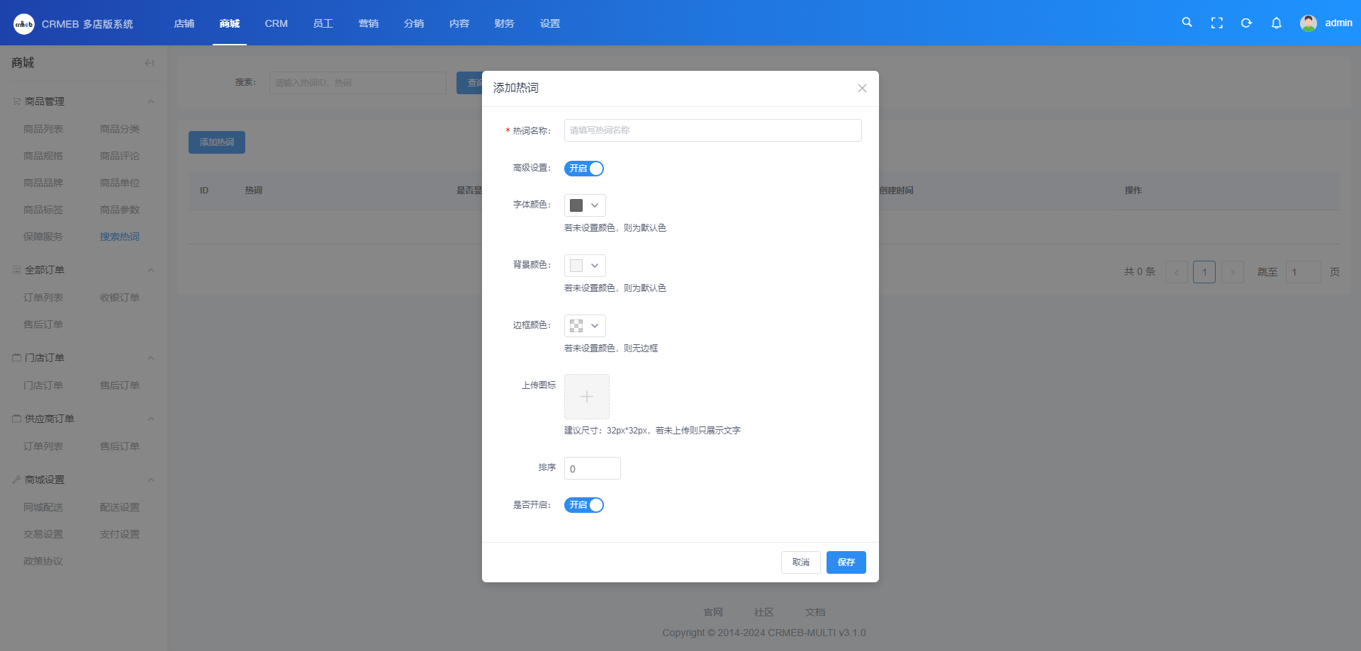 排序:设置热词在移动端搜索页面的顺序,数字越大越靠前