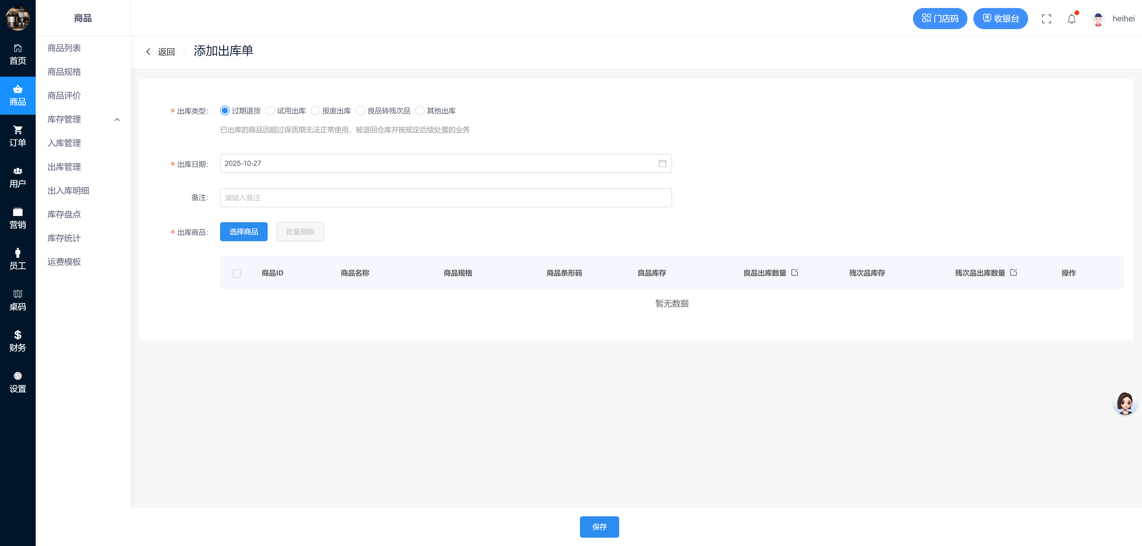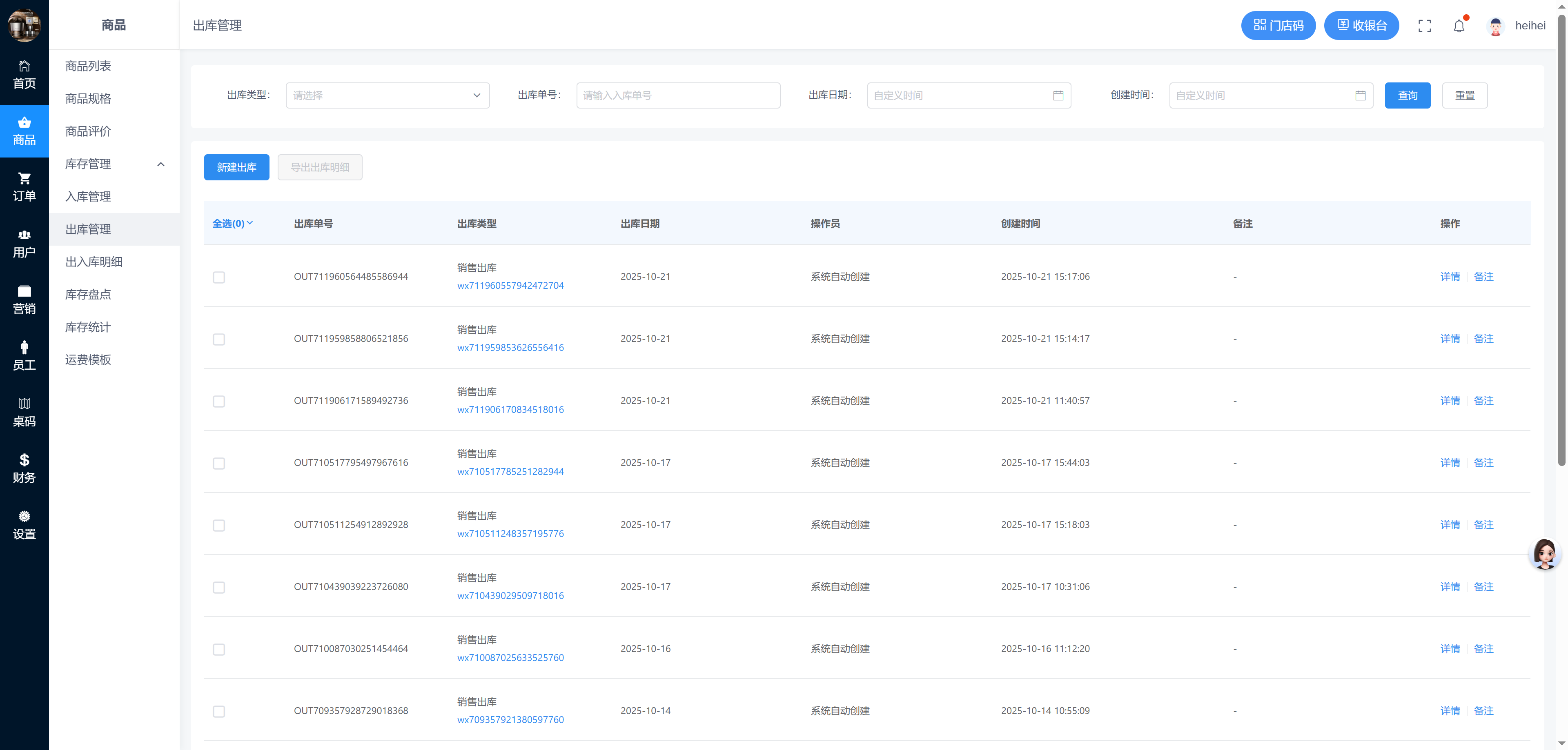 商城 > 库存管理 > 出库管理