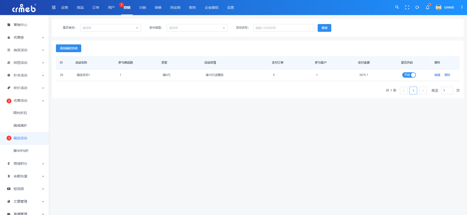 - - 送优惠券:设置满足优惠条件时,赠送的优惠券,此处可选到的为后台赠送类型的优惠券;