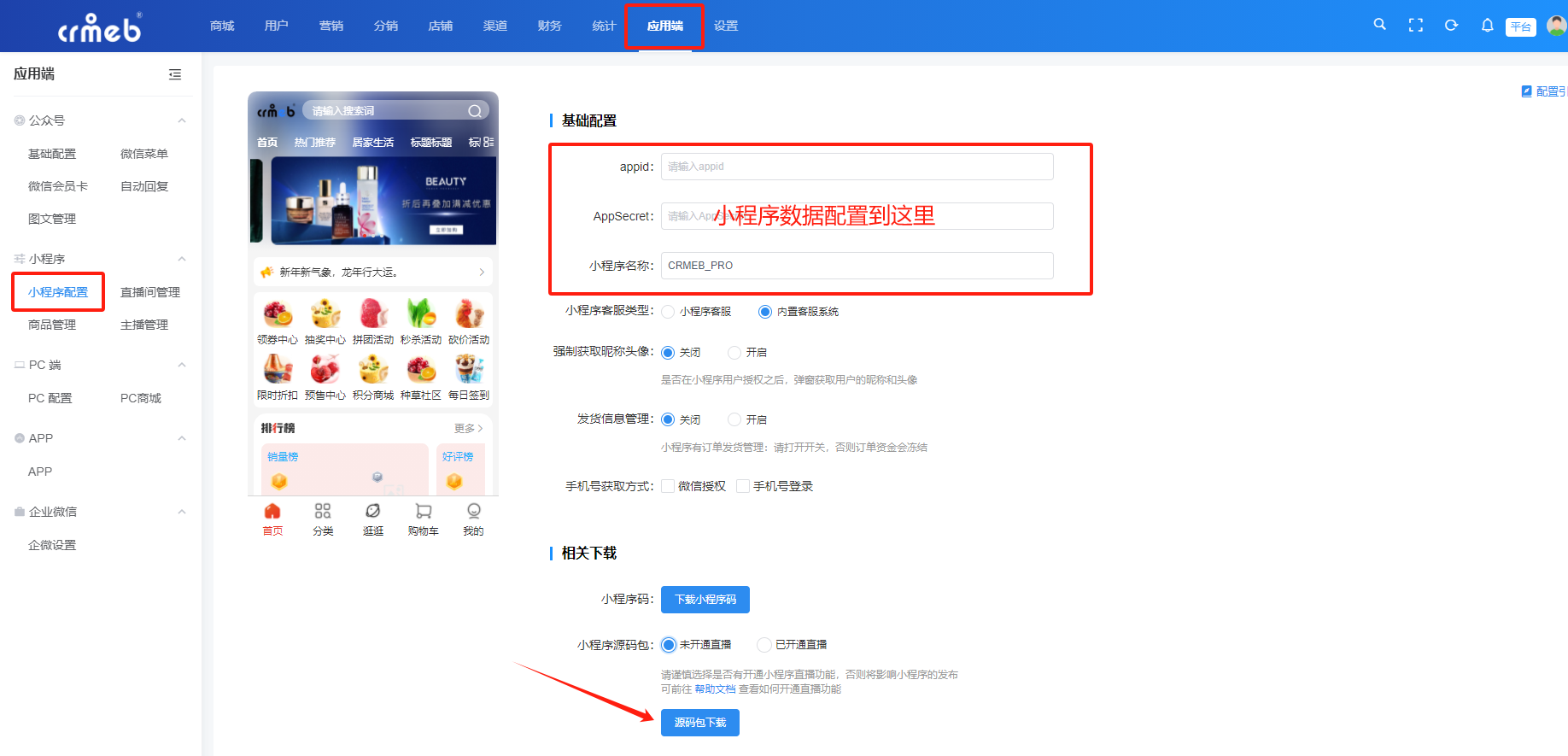 应用端—-小程序配置—-源码包下载