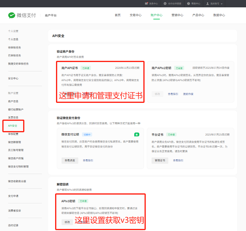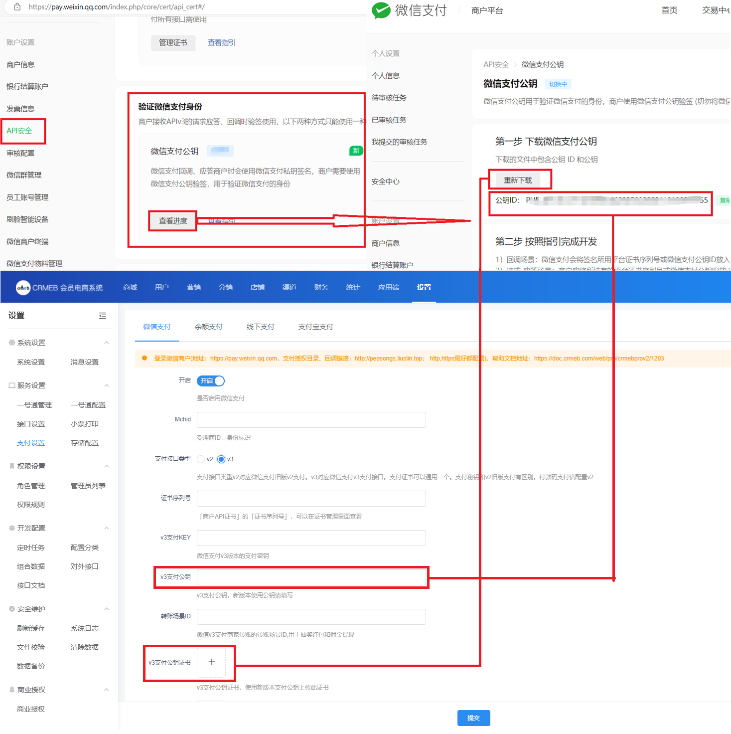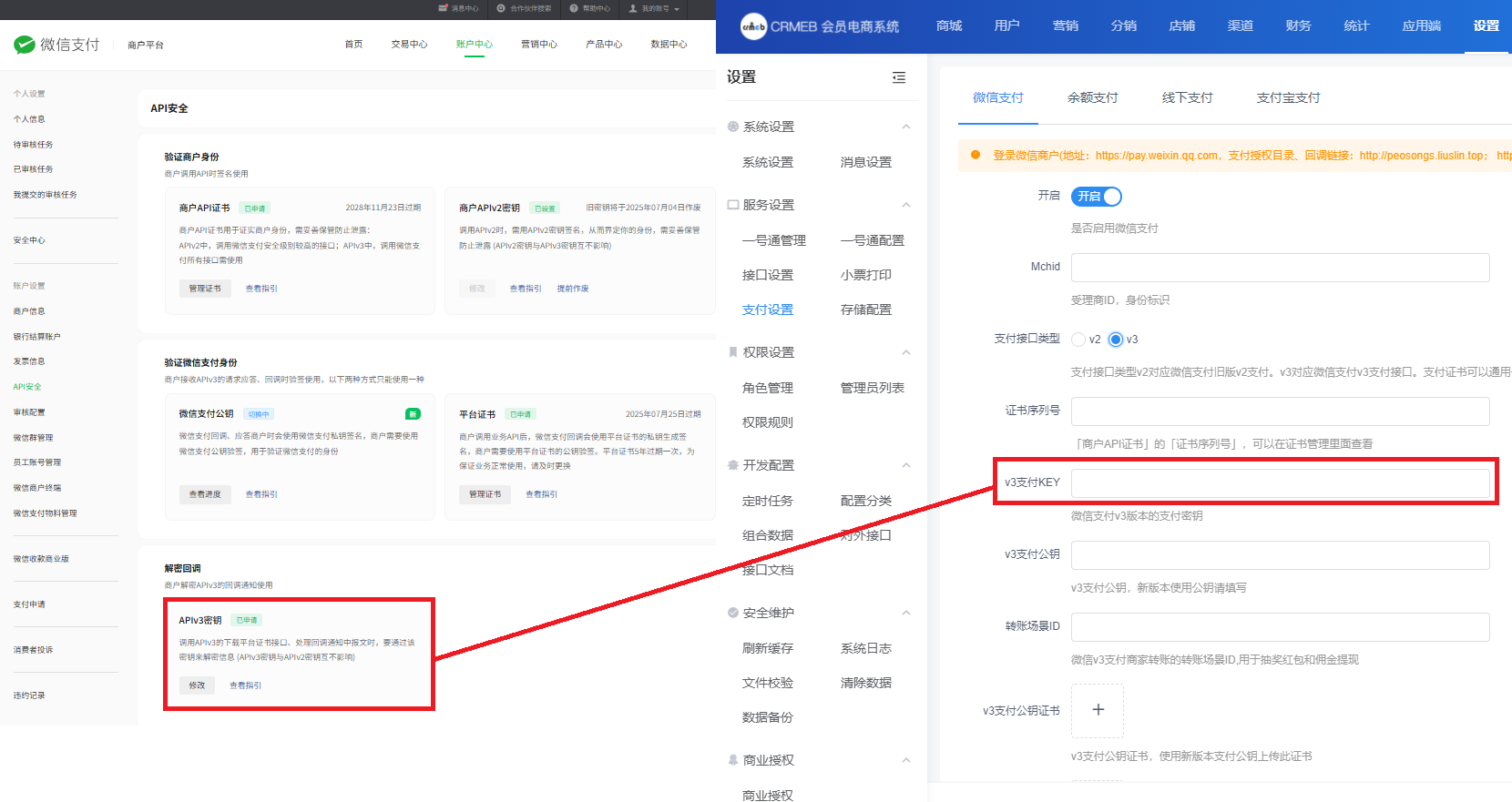 1.点击设置APlv3密钥,根据规则自主添加密钥,并将设置的APlv3密钥填写到管理后台