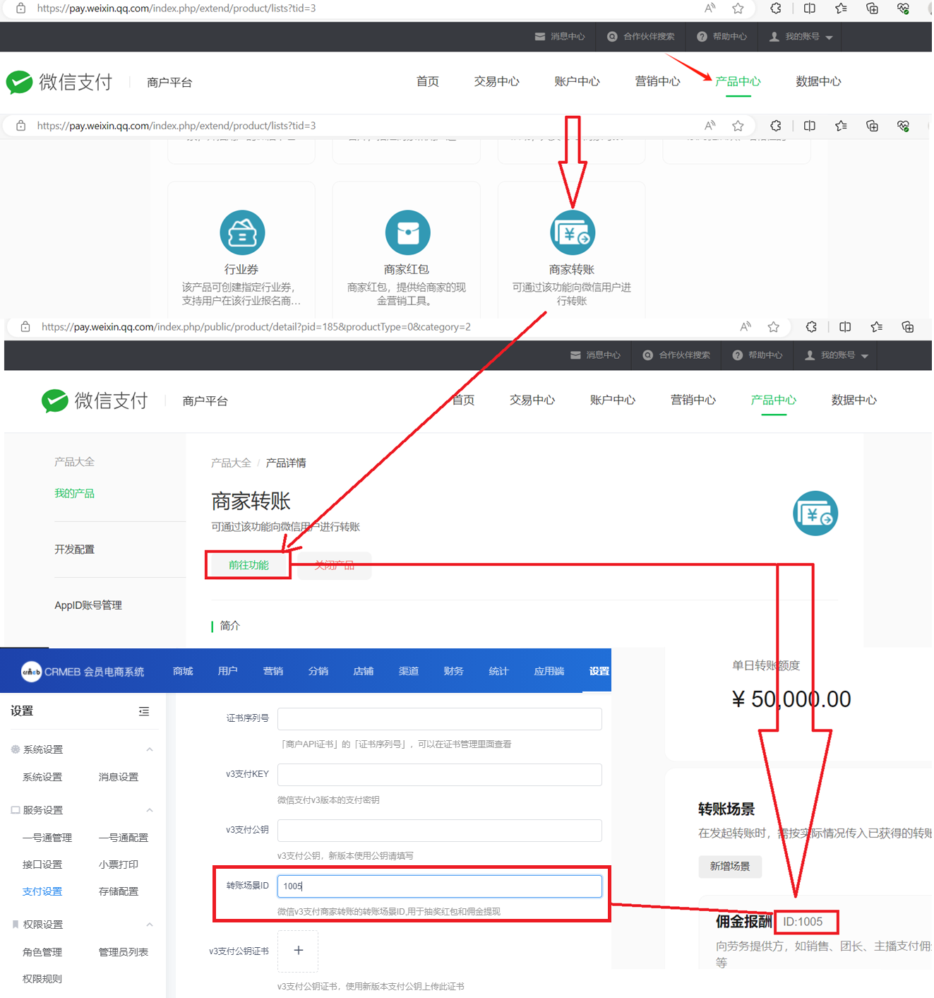 5.微信自动提现场景值设置(场景开通:现金营销,场景值:1000)