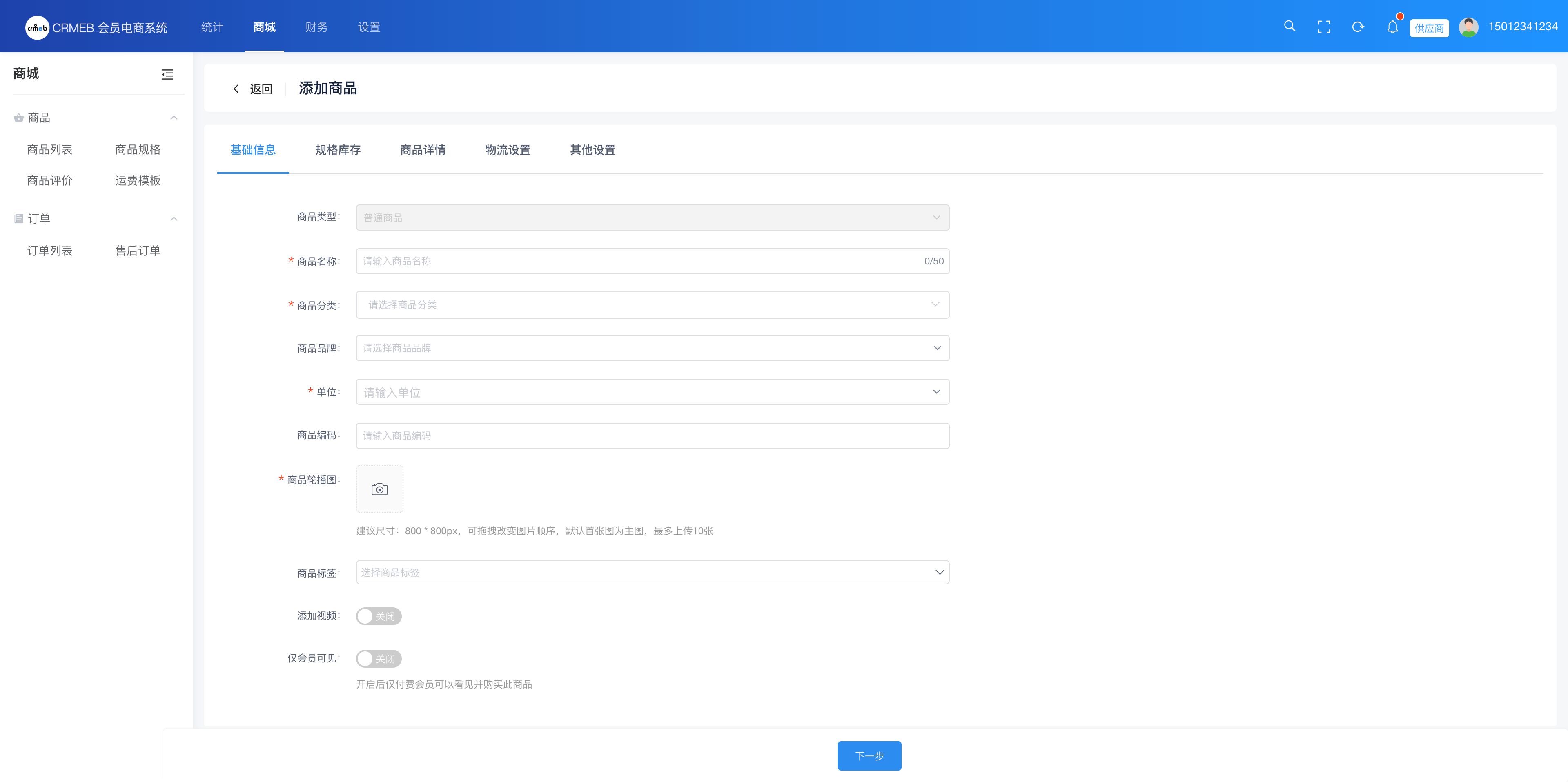 供应商添加商品步骤同平台添加商品,具体步骤见商品管理 > 商品列表 > 添加商品说明。