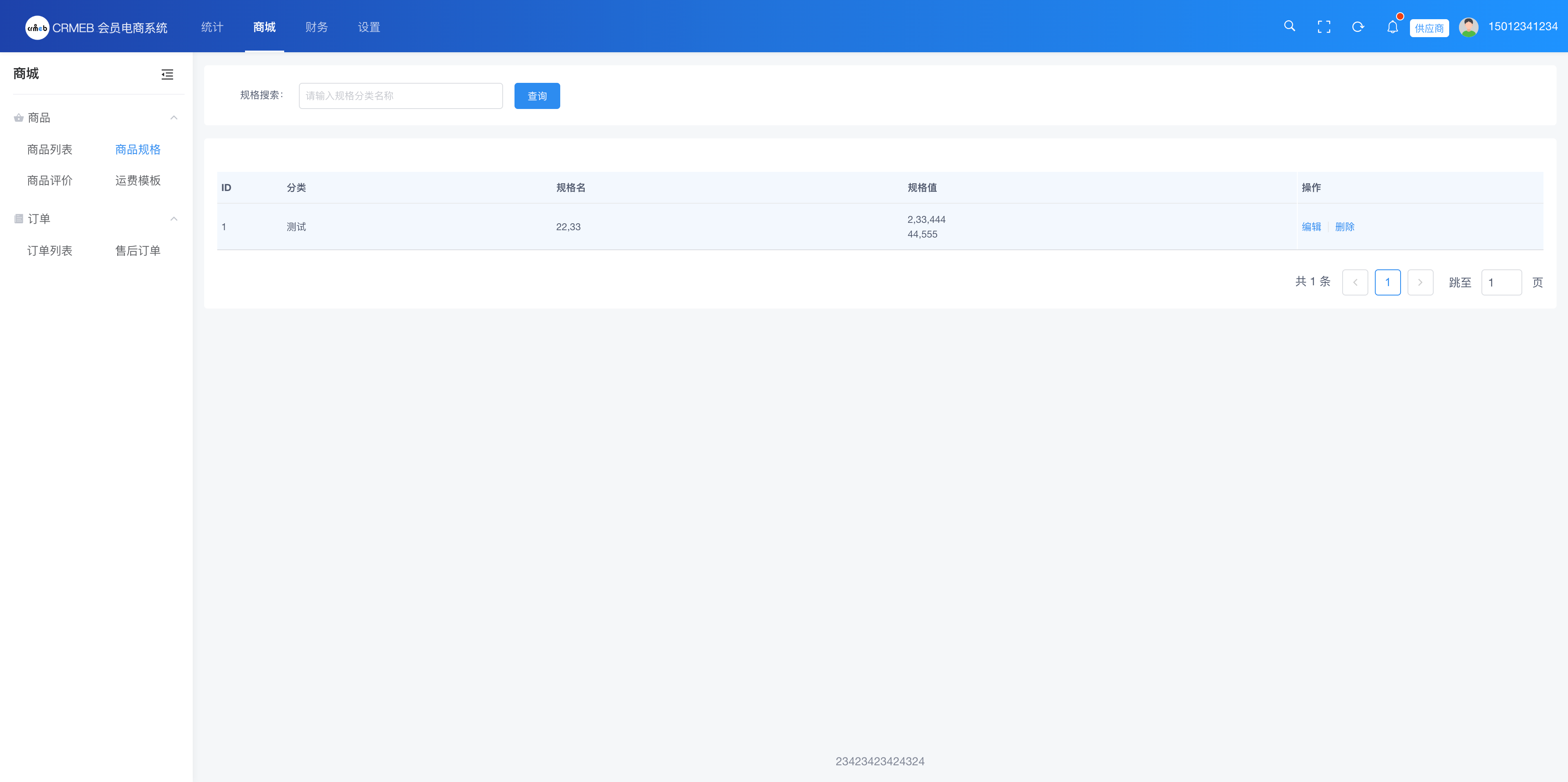 供应商可添加商品规格模板,于添加商品时引用。