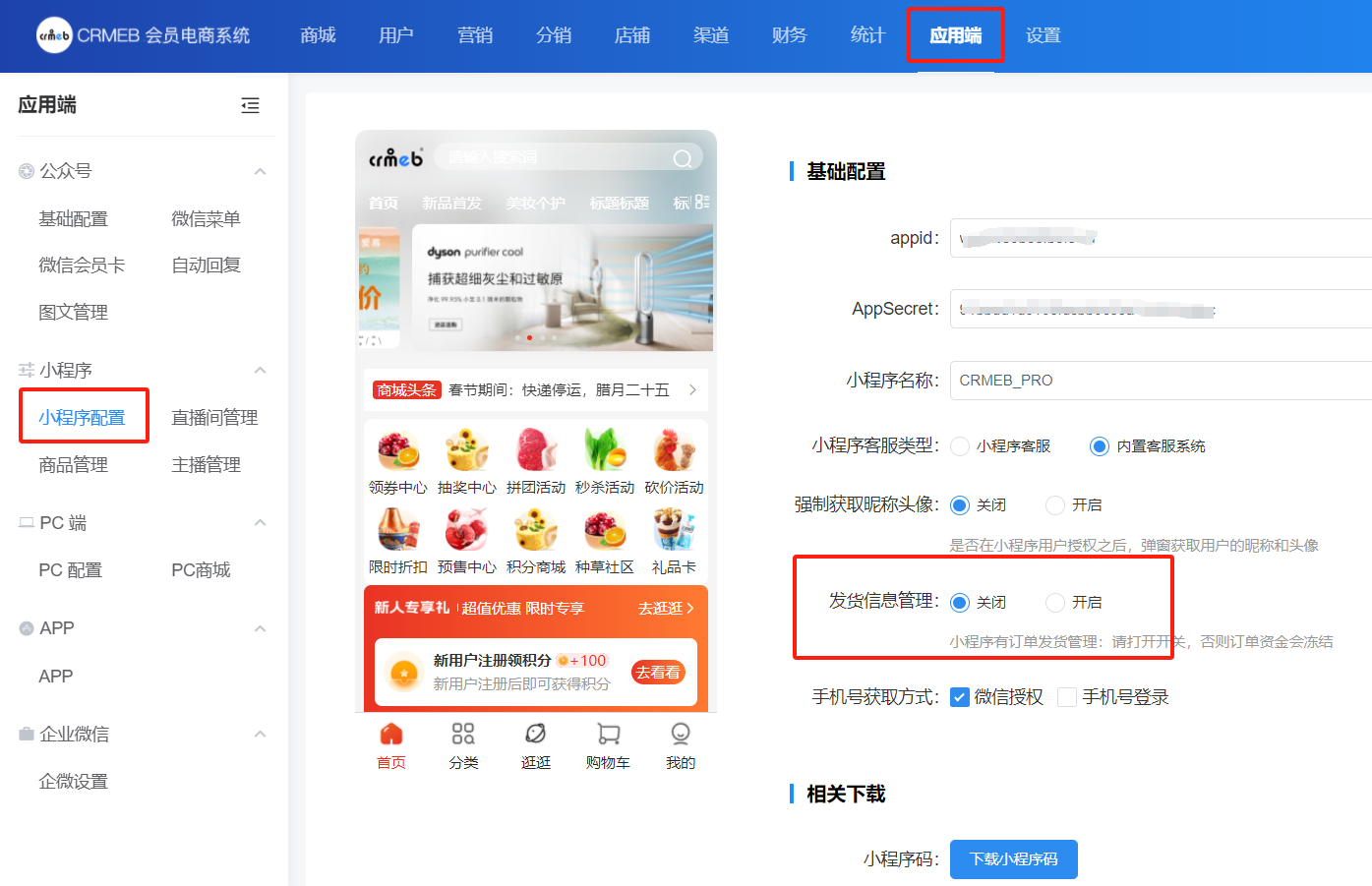 如果小程序中有发货信息管理的菜单,就需要在系统中小程序配置里面打开发货信