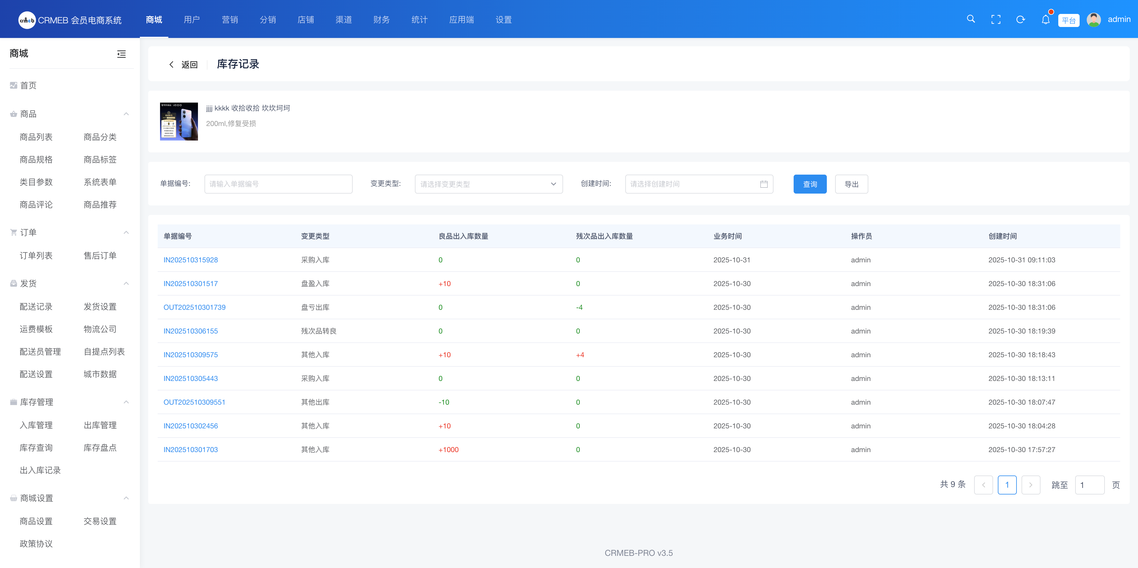 出入库记录能查询此规格的所有出入库的记录