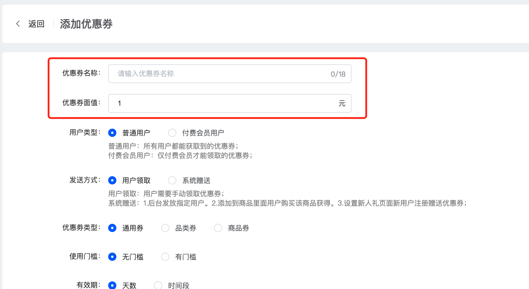 2、添加优惠券