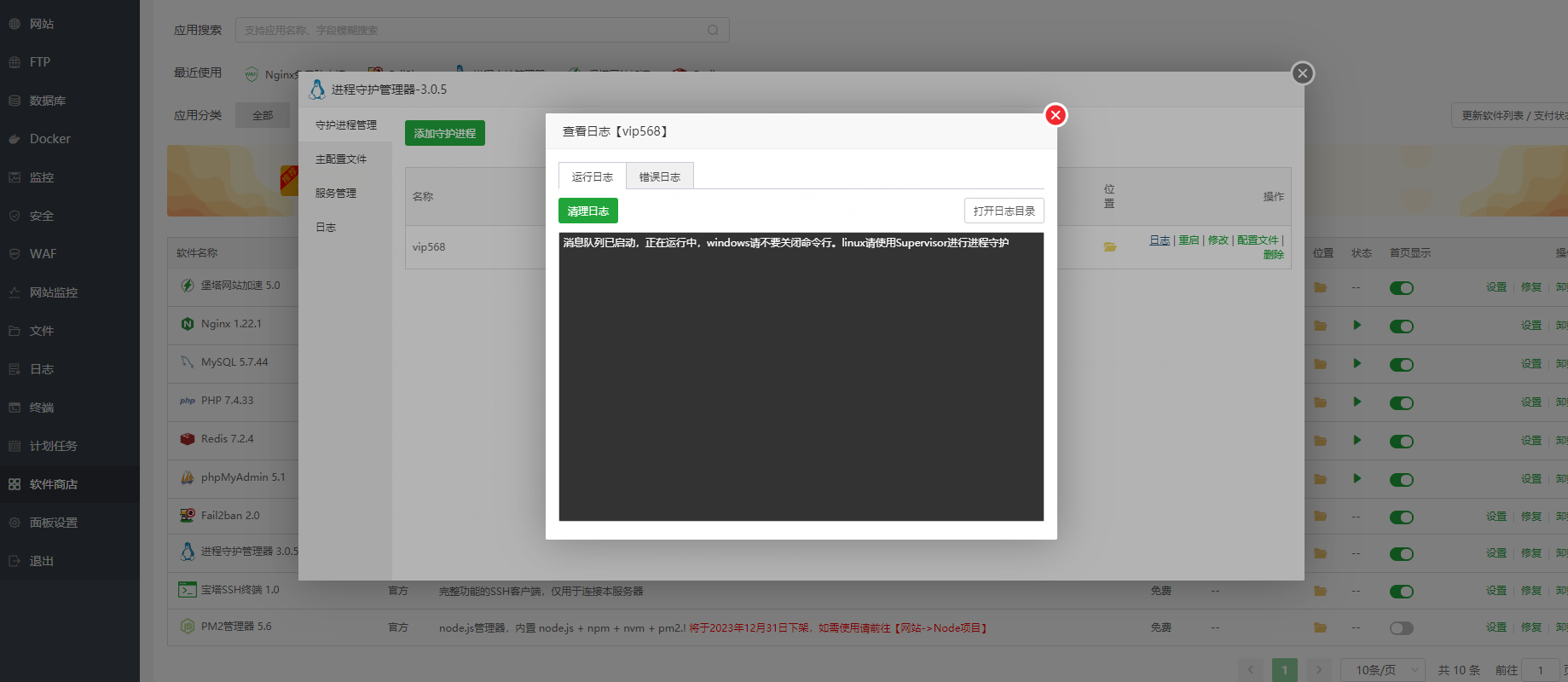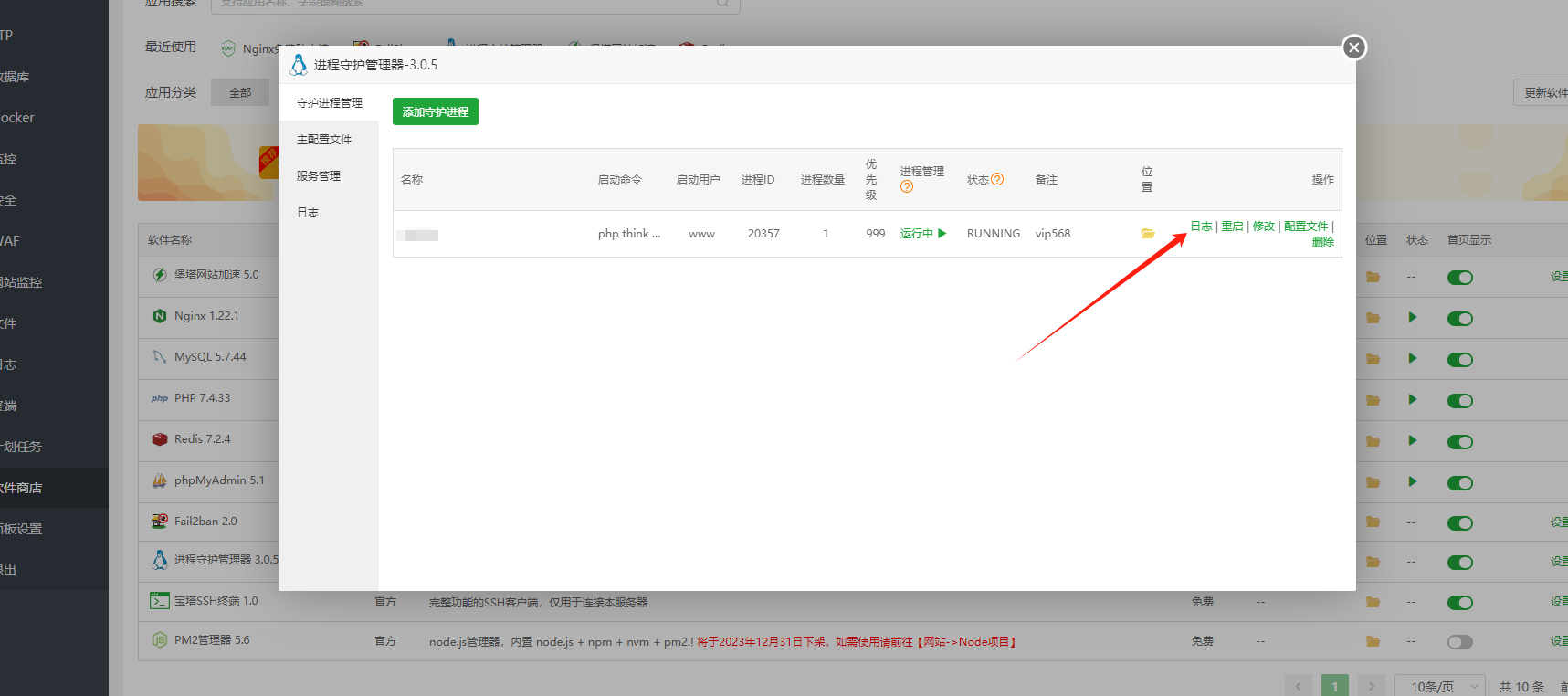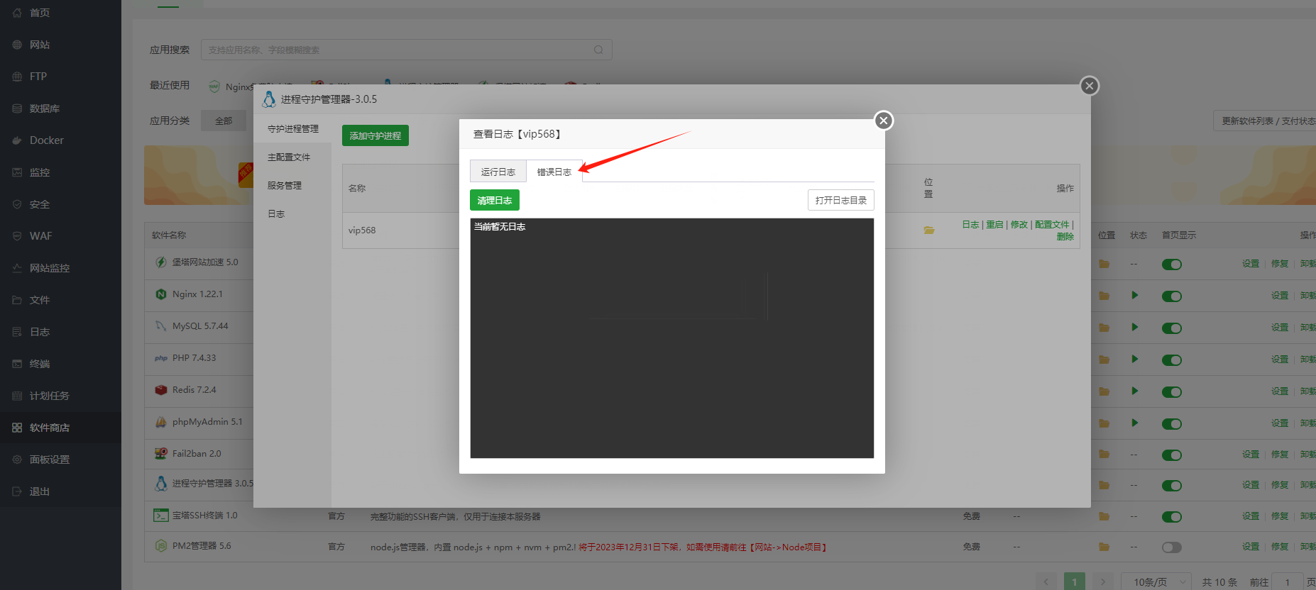 检查进程守护里面有没有错误日志,没有错误日志就是正常