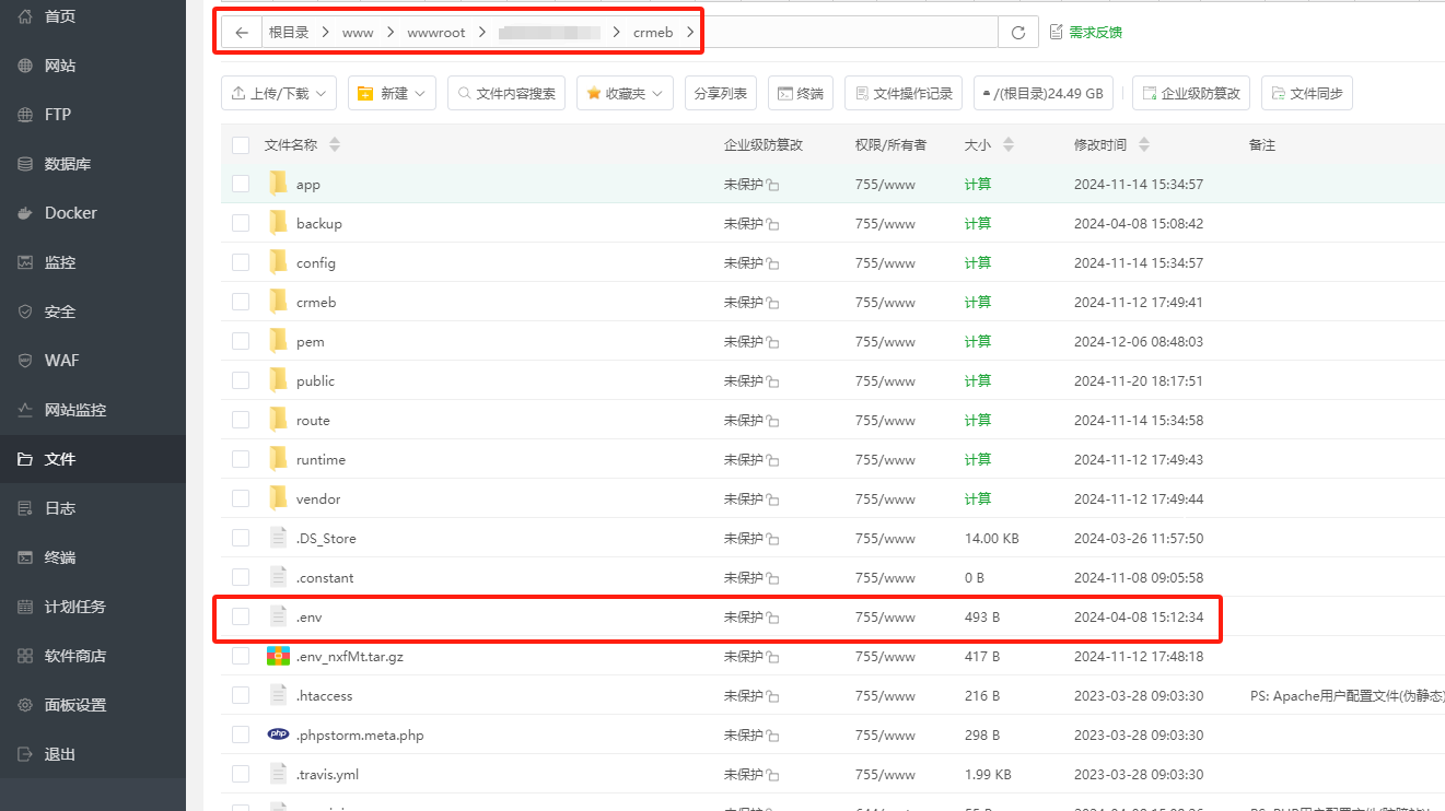 .env为连接数据库配置文件,安装完系统会自动生成这个文件