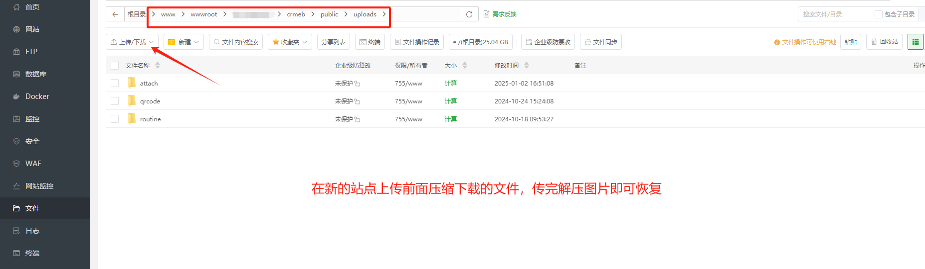 备份站点和数据库以及恢复数据和图片