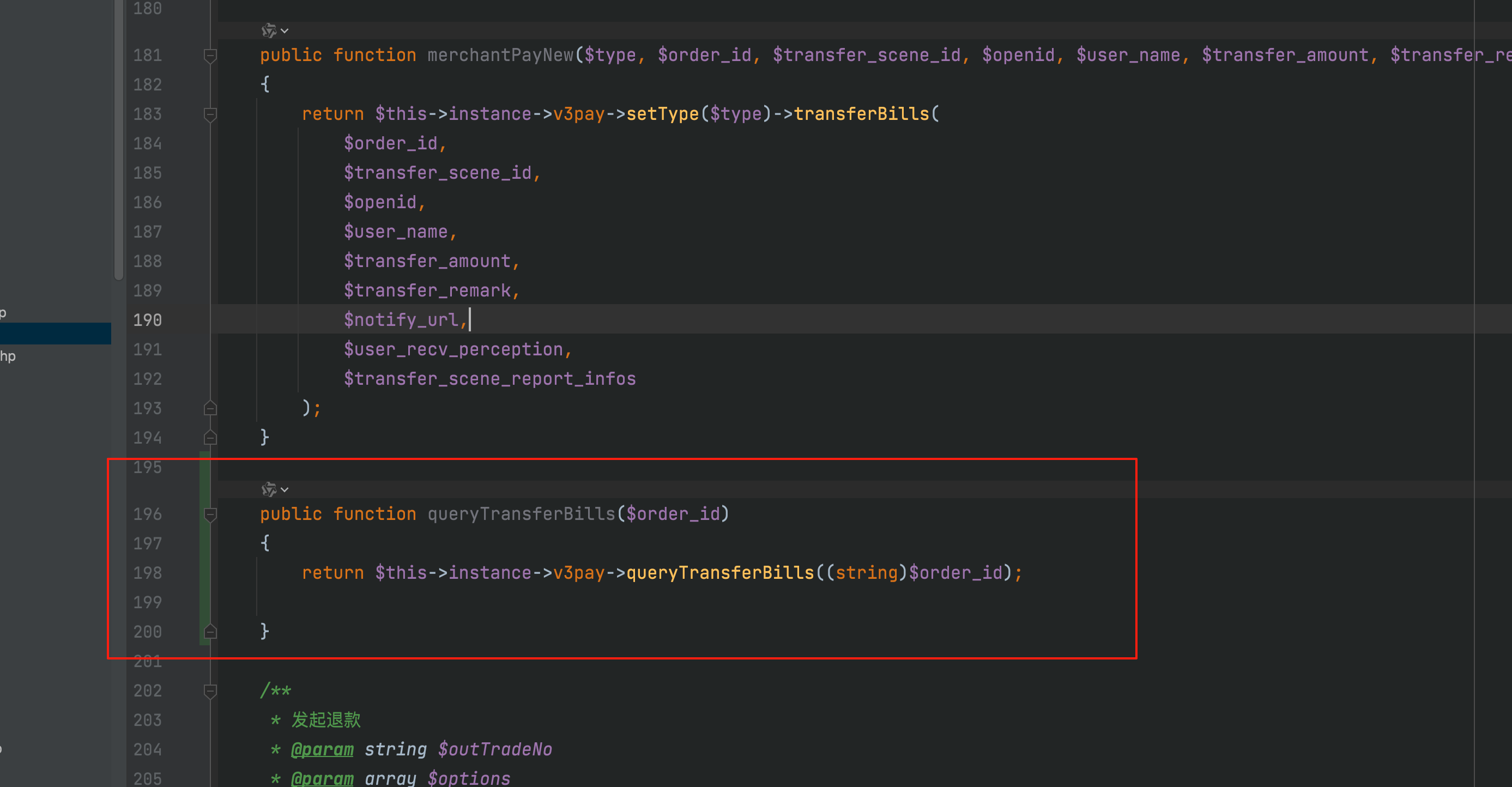 public function queryTransferBills($order_id)