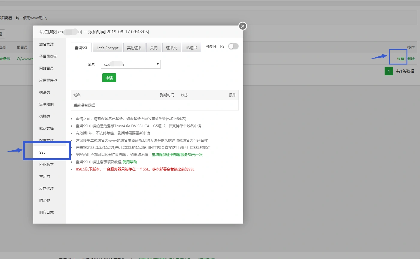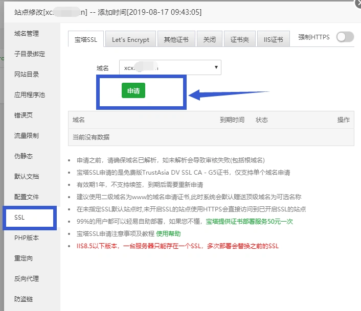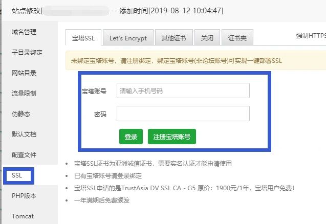宝塔申请SSL