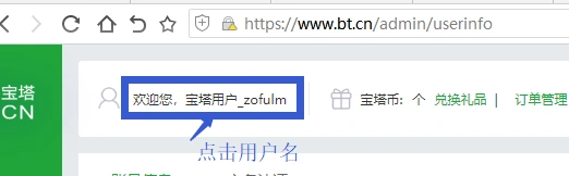 3. 返回你的宝塔面板后台。登录刚申请认证的帐号。