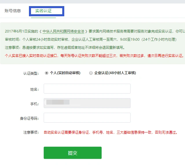 (3)提交信息,认证即可