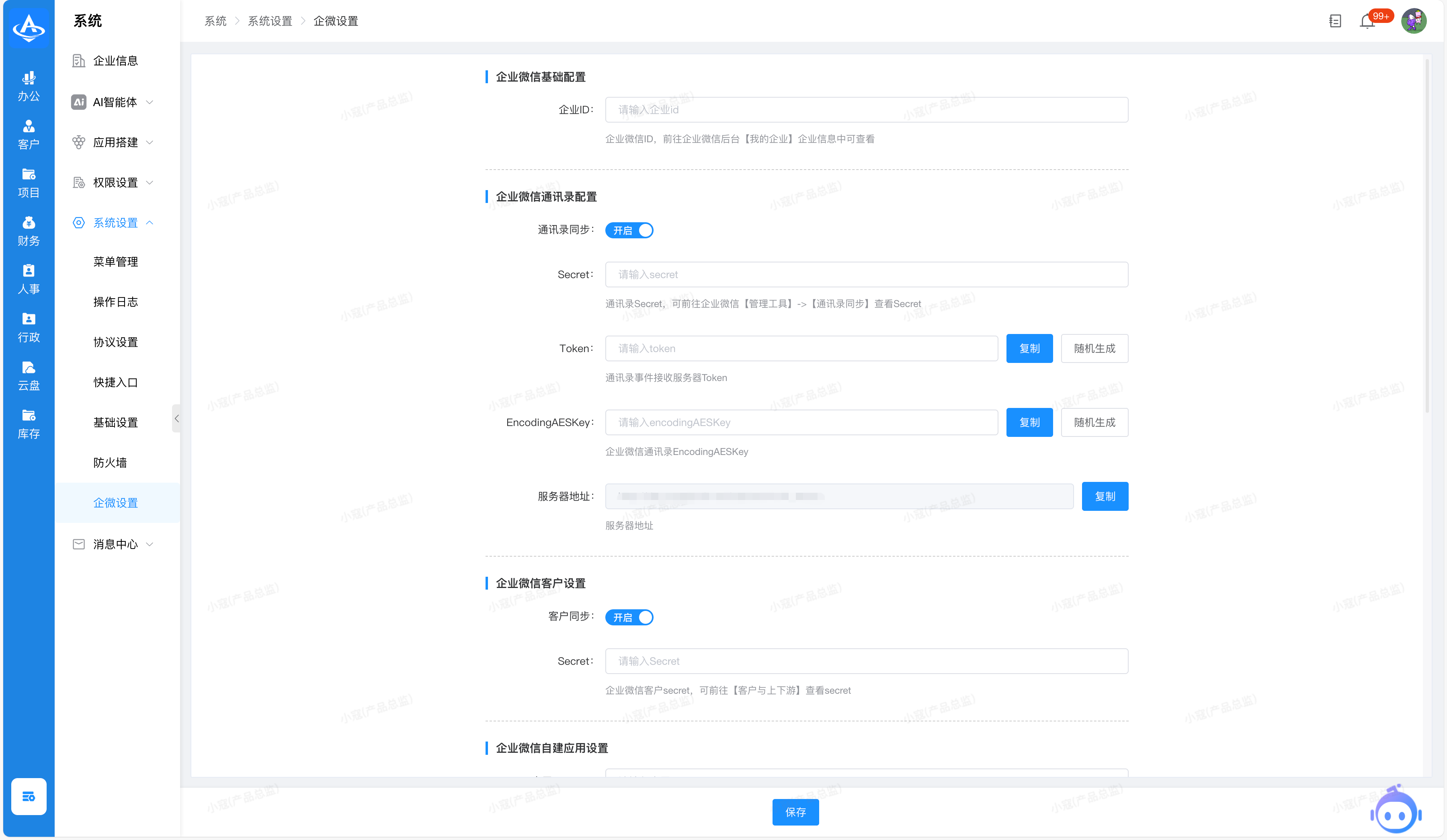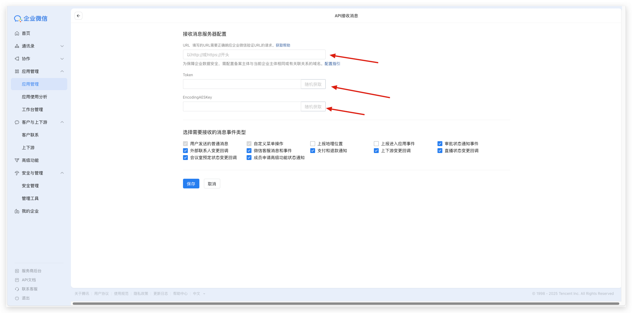 信息从陀螺匠系统进行粘贴后,对应填入企业微信设置接收消息服务器URL页面
