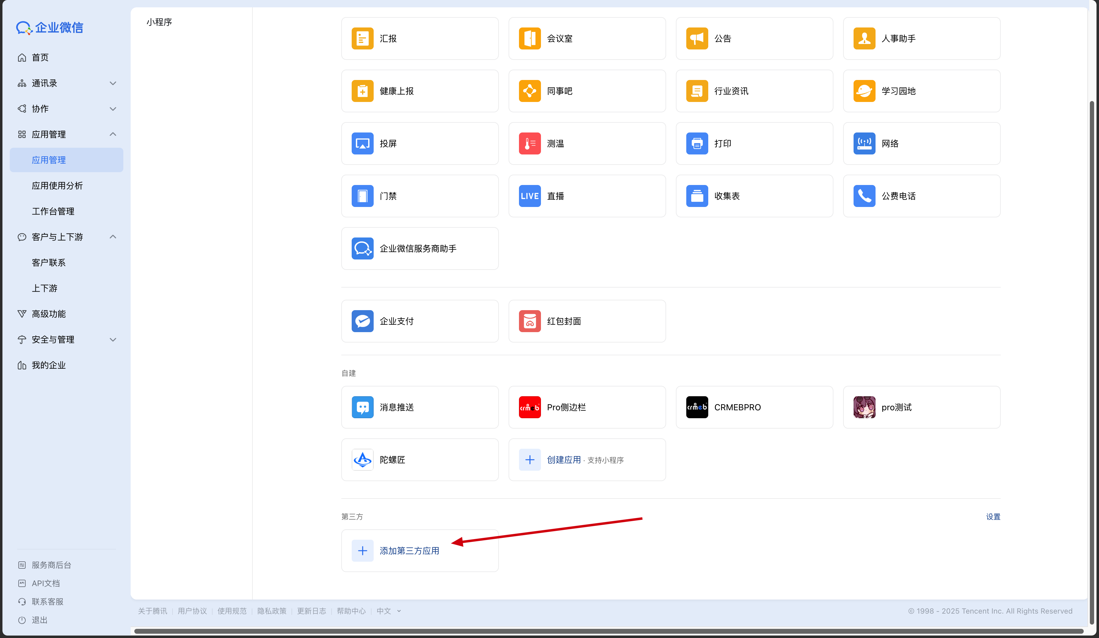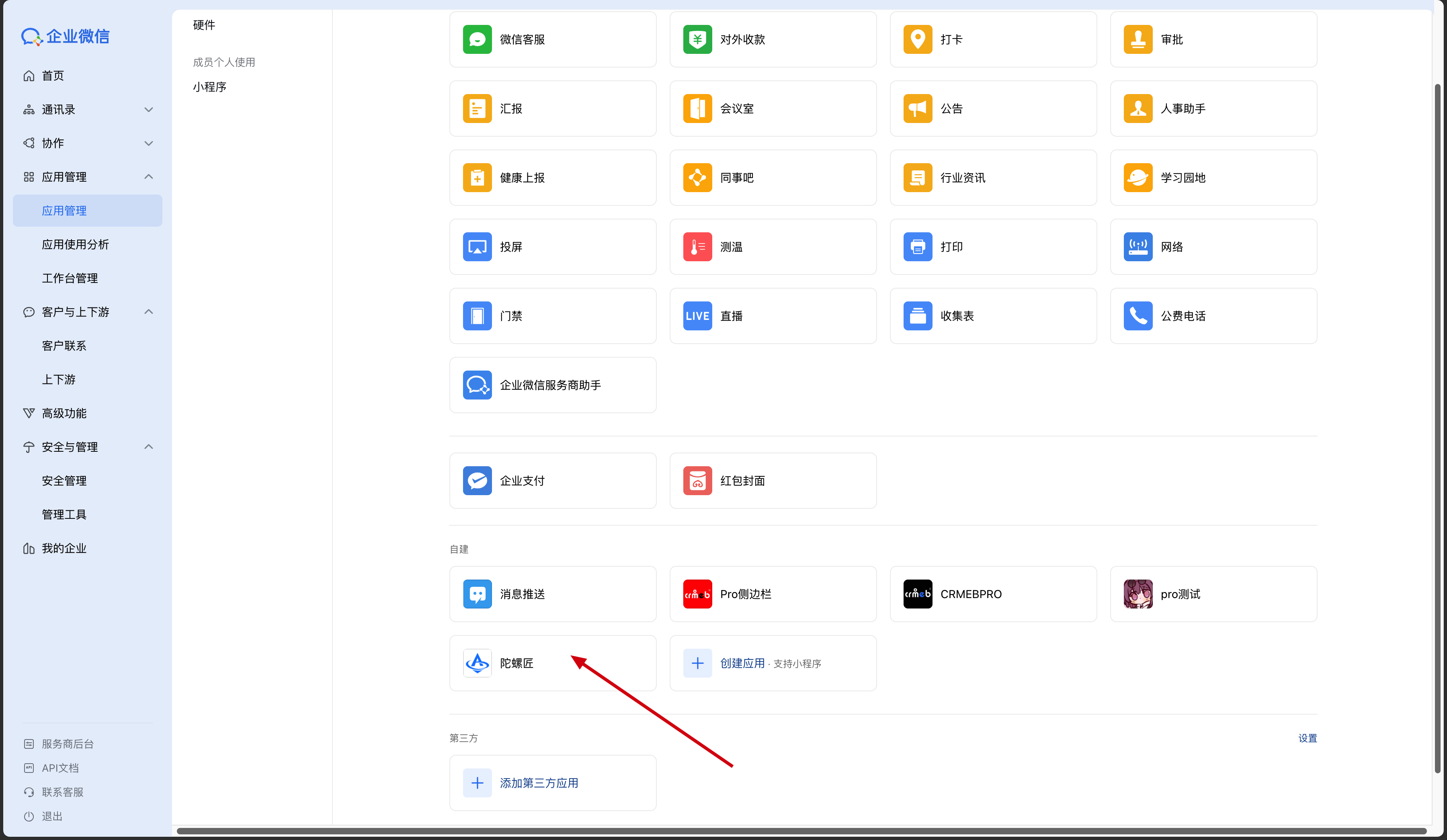 2)往下一直滑,点击【添加第三方应用】,系统会打开添加应用页面