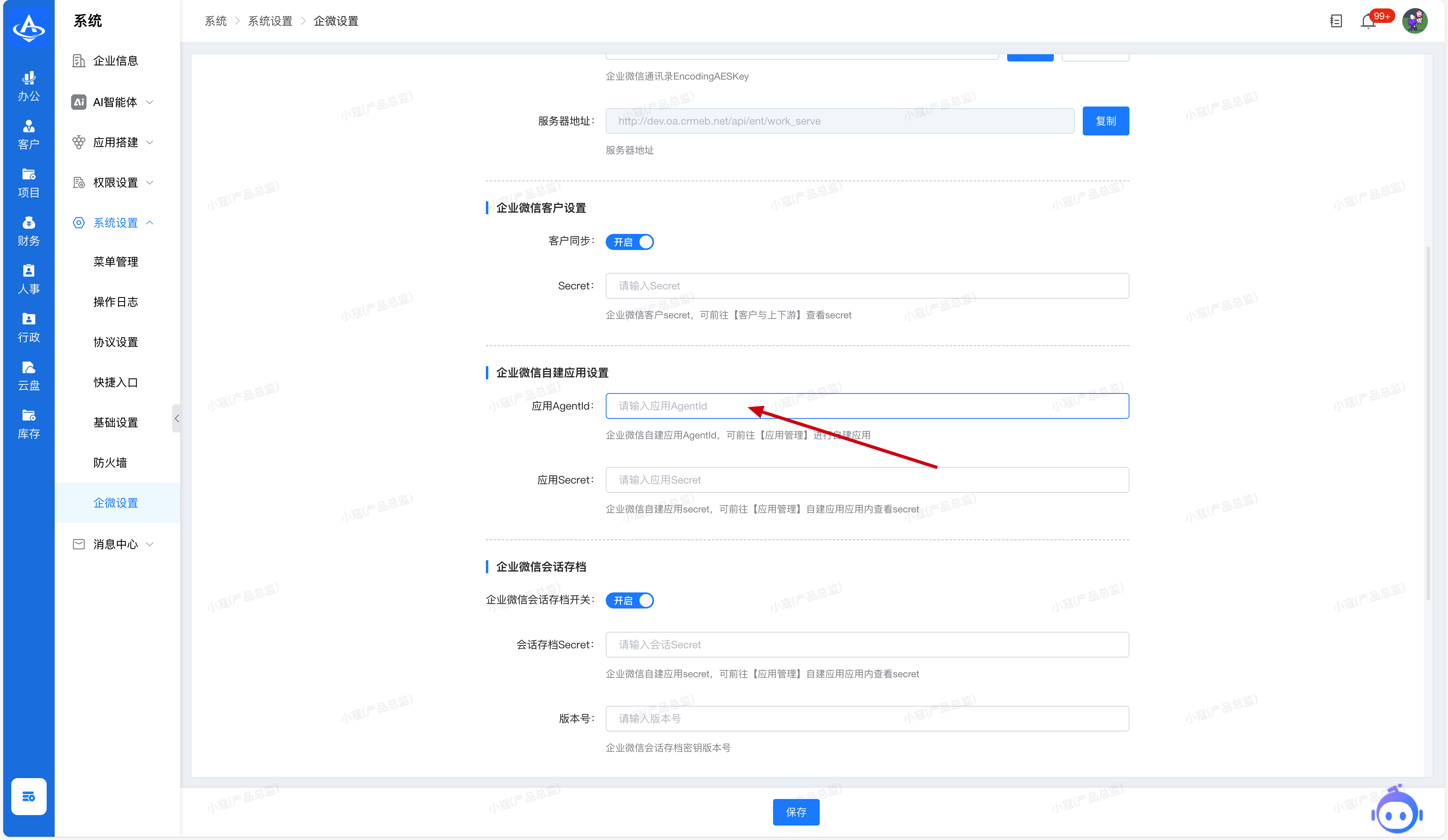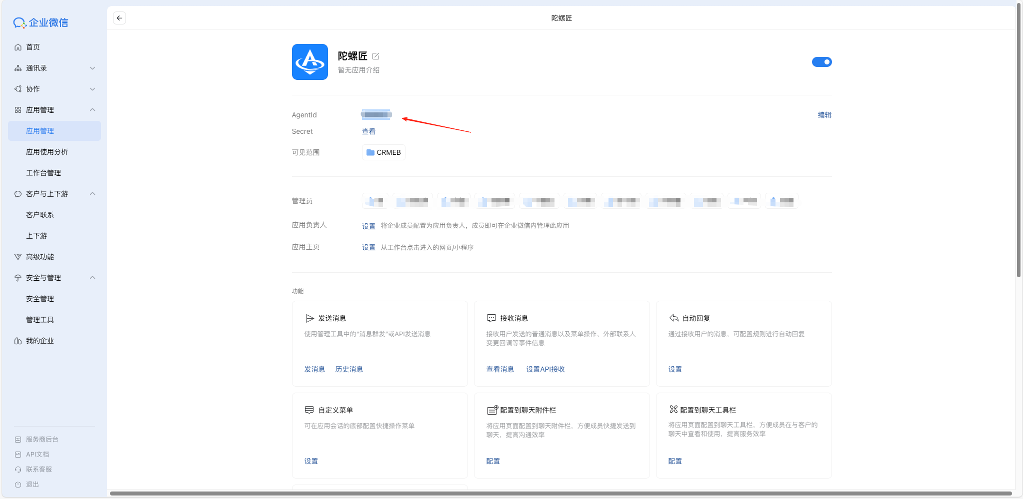 3. 企业微信自建应用AgentId设置