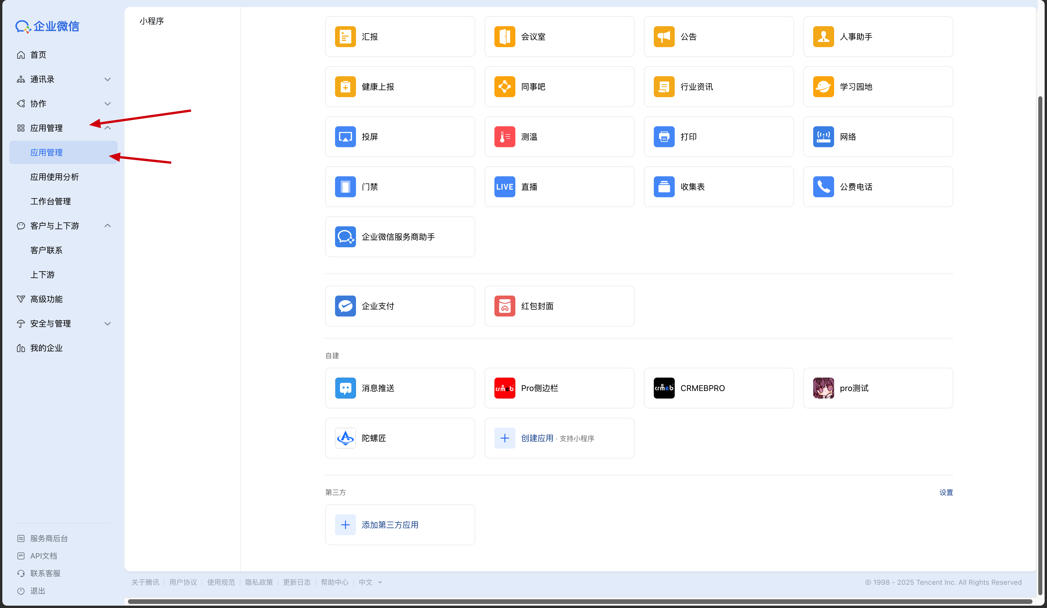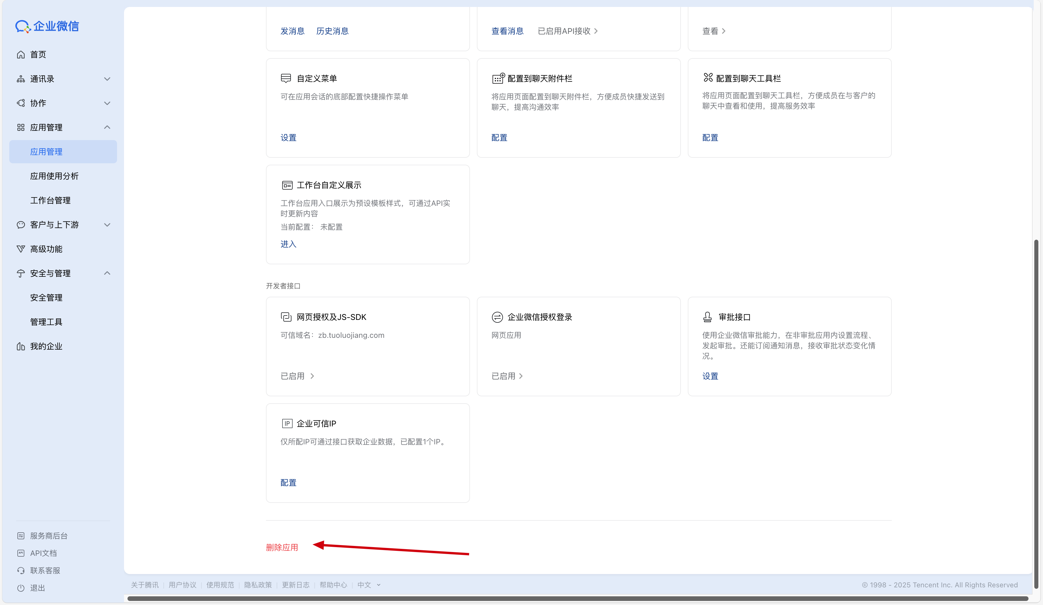 企业微信应用设置