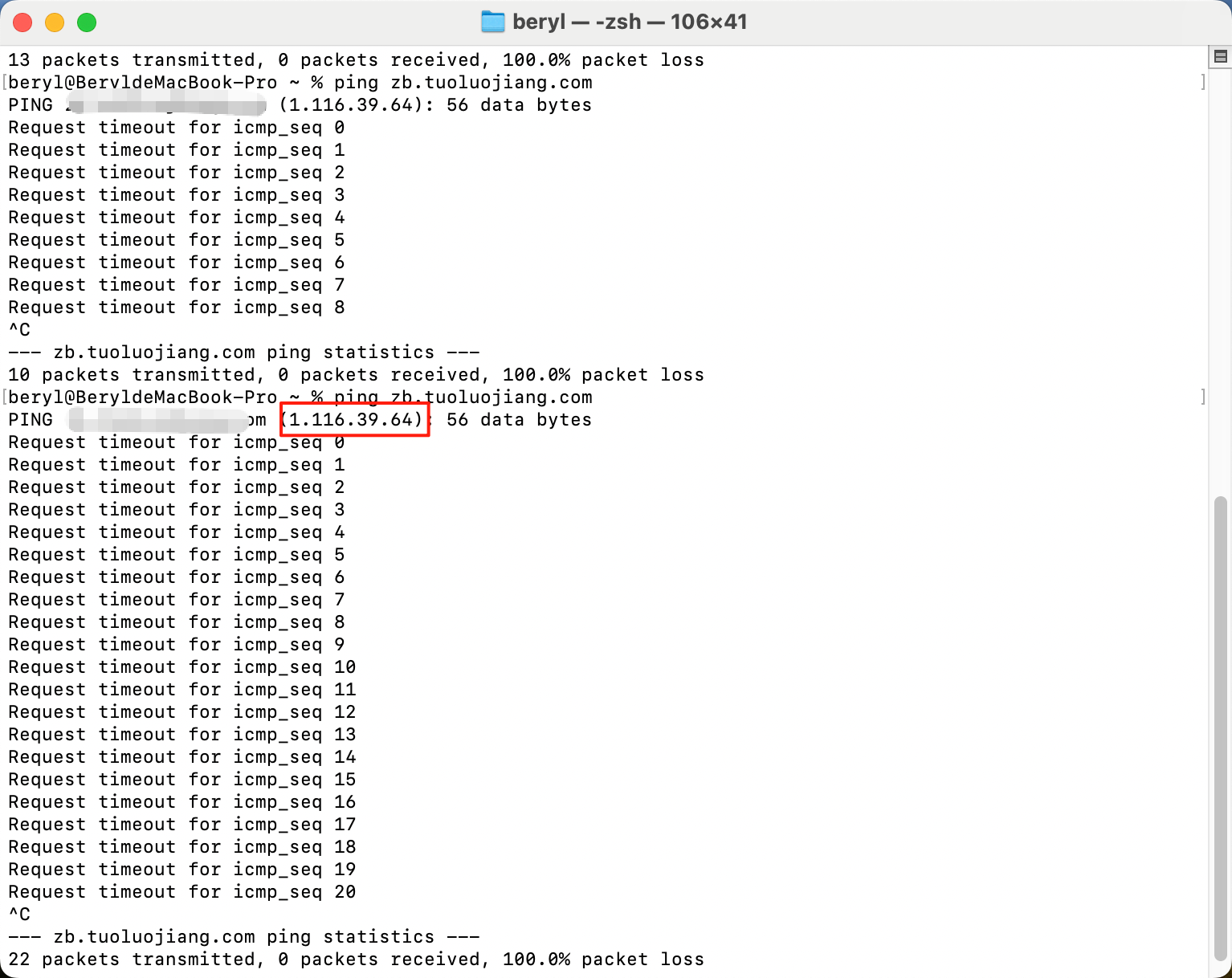 在终端中输入ping,空格后输入域名,例如:abc.com「不需要http及其相关后缀」;回车后将域名后的值进行复制