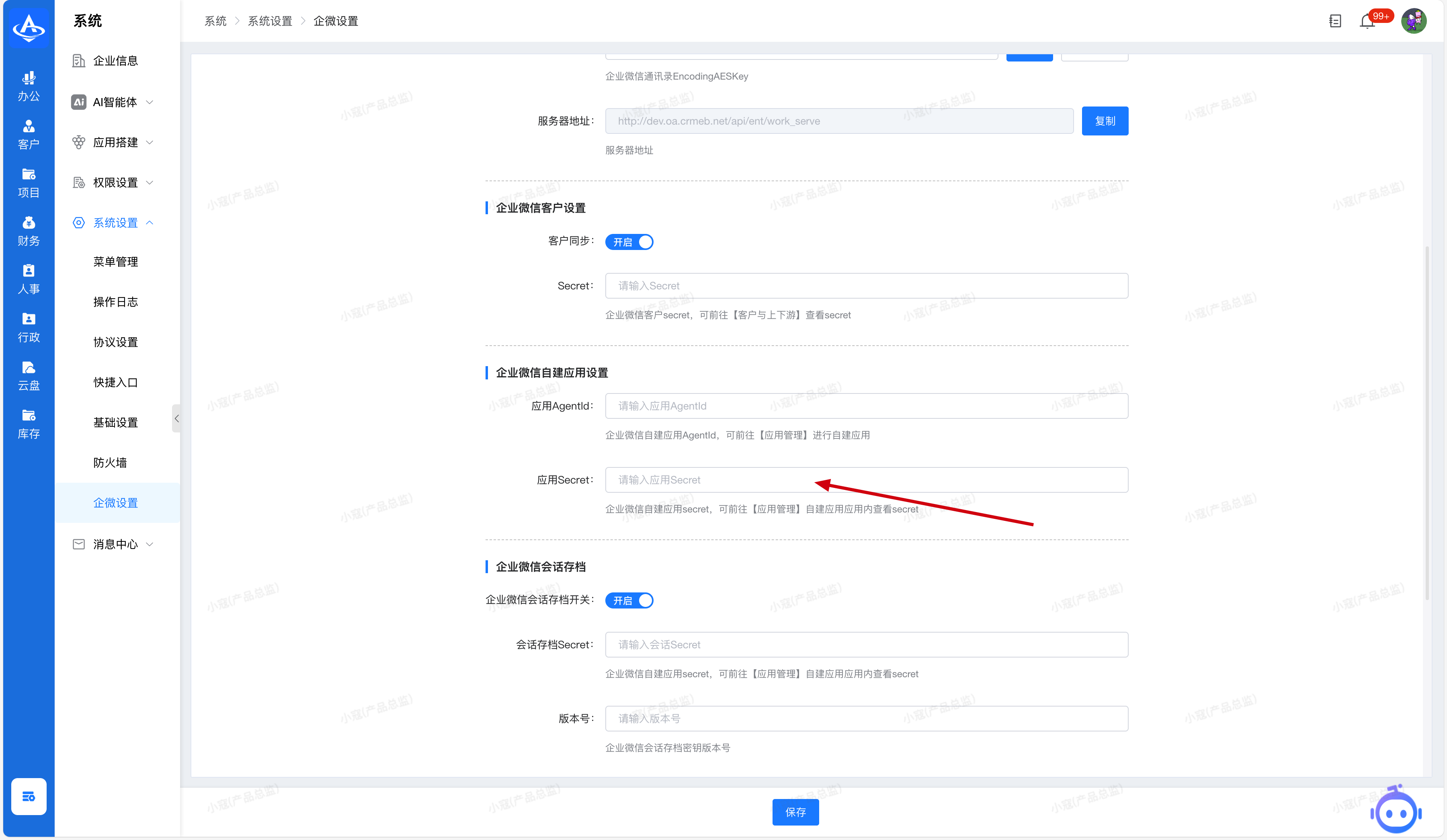 4. 企业微信自建应用Secret设置