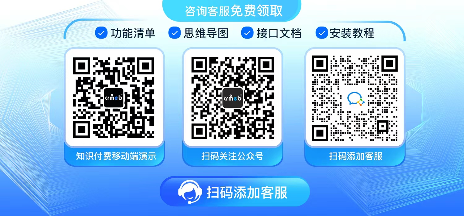 微信扫码关注CRMEB公众号,点击公众号下方菜单即可查看演示